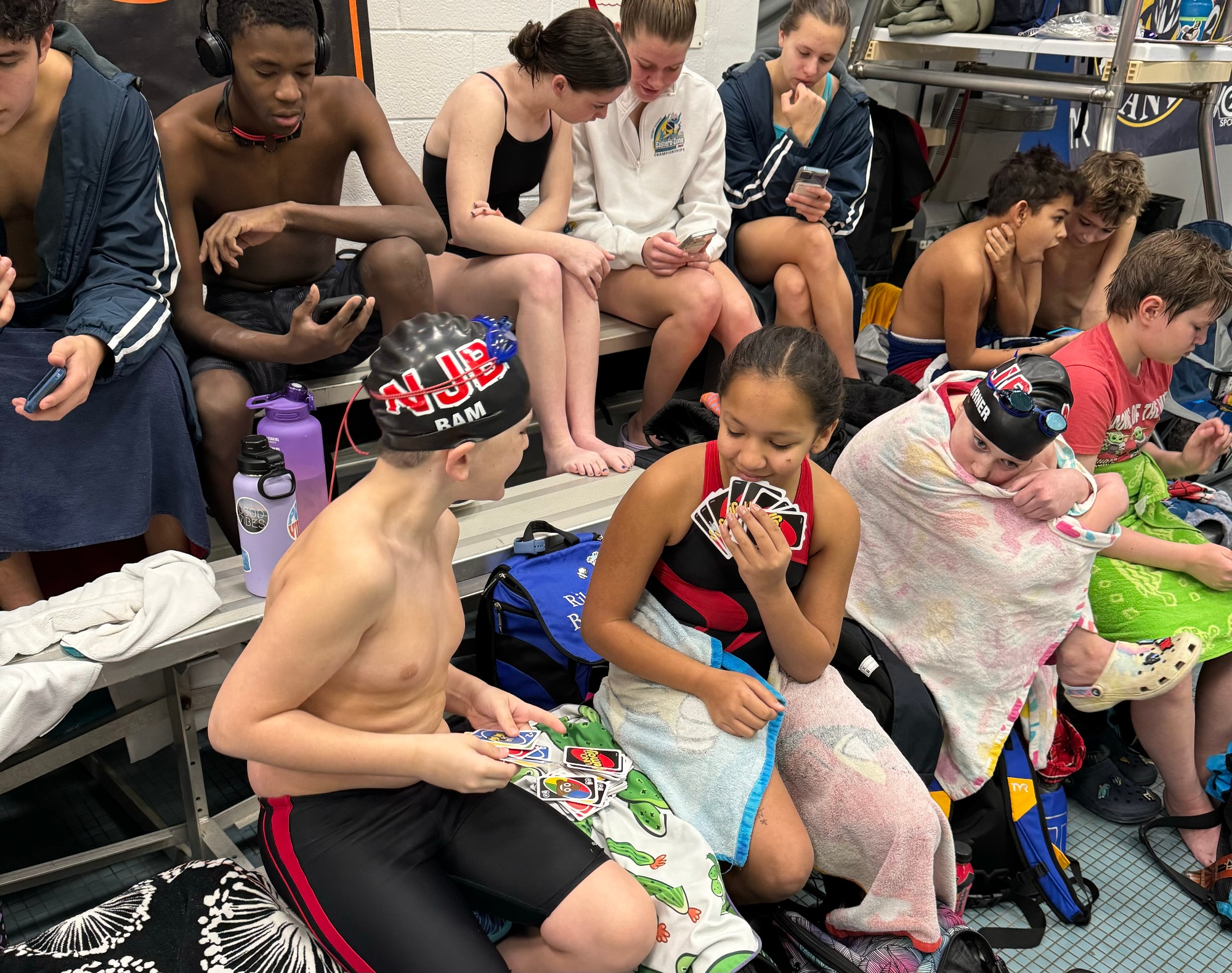 We had a large turnout at this meet, and our swimmers had drops galore. Out of our 117 individual splashes, an incredible 55 were Personal Bests. And many were substantial drops, like Riley Bacinski’s 200 Fly (-6.85); Carter Bambara’s 100 Back (-5.19) and 100 IM (-9.76); Molly Bellflowers’ 50 Fly (-5.26); Brooklyn Davis’ 100 IM (-19.22); Brielle Greenwood’s 200 Free (-22.18); Jonathan Kern’s 500 Free (-7.51); Maddie Meyler’s 100 Free (-18.69); Kaylee Moss’ 100 Breast (-5.61); Channing Muller’s 100 Breast (-8.32); Ethan Rodriguez’ 100 IM (-5.29) and 50 Back (-6.06); Briella Selby’s 200 Free (-14.27); Samantha Taylor’s 100 Free (-11.94); and Zoe Thaller’s 50 Back (-5.09); just to name a few.