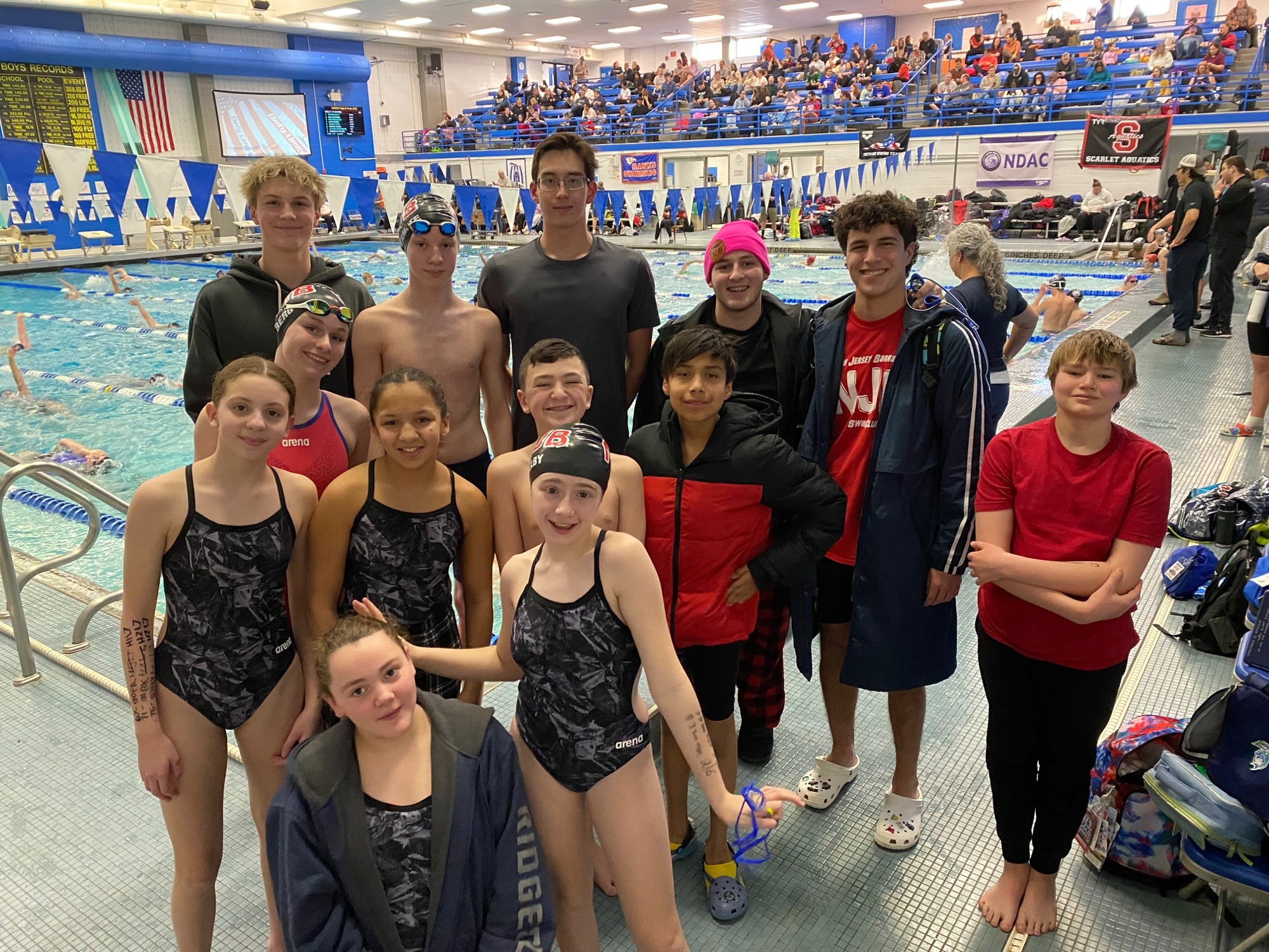 Our crew had the announcer calling out “North Jersey…” regularly, with a ton of top places including four Firsts by Reese Berg (400 IM); Julia Dutzi (100 Back); and Ty Hollar (1650, 200 Free).