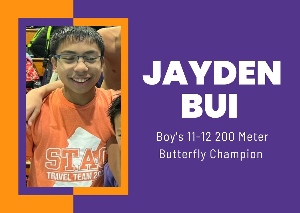 Congratulations to STAC’s Jayden Bui on placing first overall in the Boys 11-12 200 Butterfly at the Eastern Zones LC Age Group Championship in...