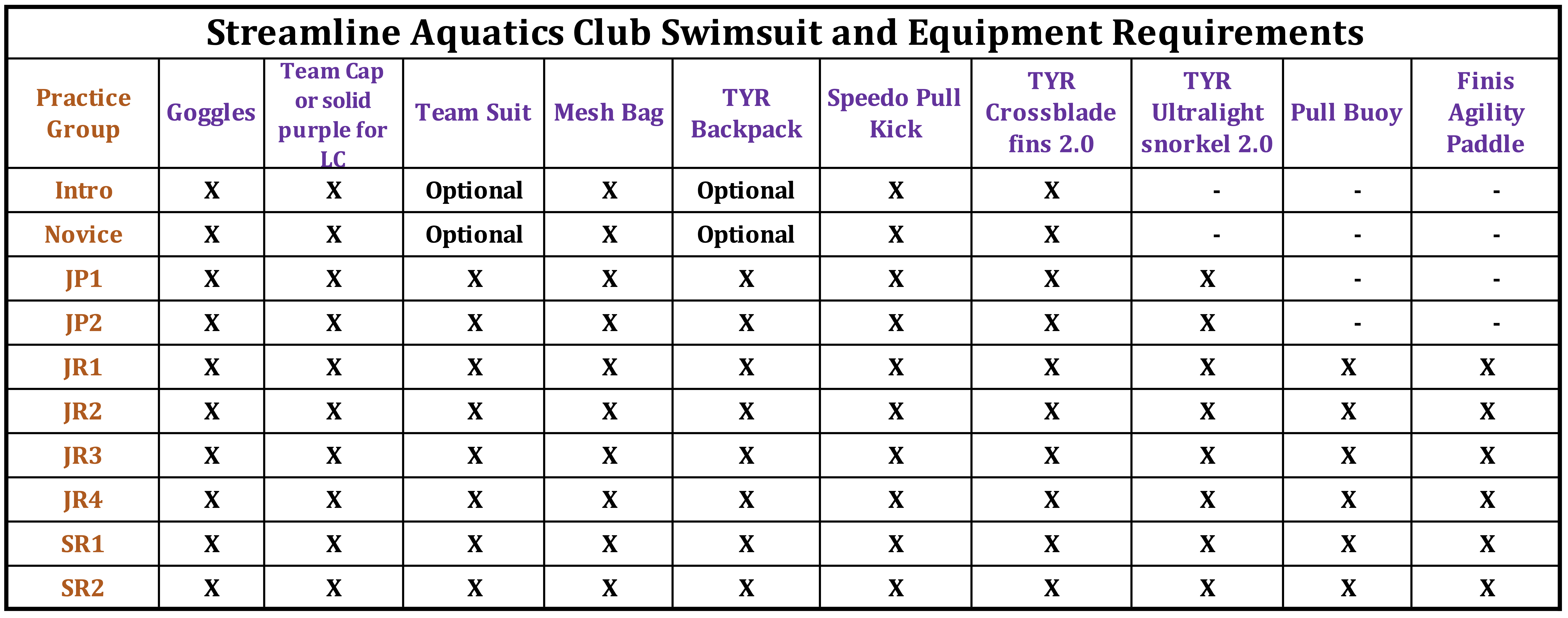 You can then login and select Streamline Aquatics from Swim Team Pages and view our team’s equipment page.