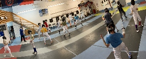 Fencers ages 8+ are welcome. Beginners start with the Introductory Package of two one-hour private lessons and then move on to the Beginner Class Wednesday afternoons, 4:30–5:30. When it's time to advance, they can switch over to the Improvement Classes on Tuesday and Thursday afternoons, 4:30–5:30.