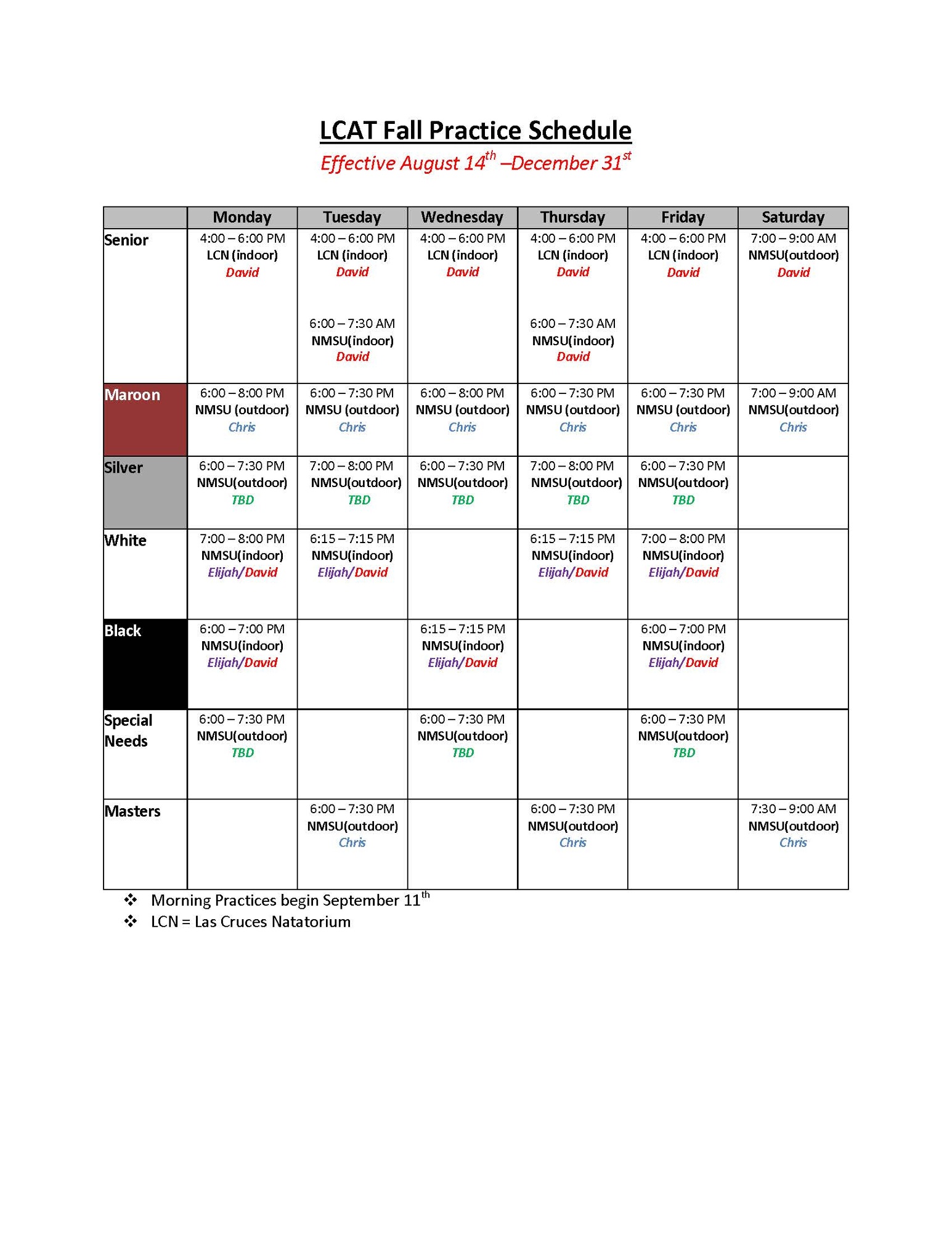 Here is the tentative fall practice schedule. I'm in need of hiring a new coach as B'Elanna is off to Korea to be an English teacher. Exciting but sad news. I've had 3 interviews already and we are publishing an advertisement to go out but so far no luck. If anyone knows a strong candidate please let me know !
