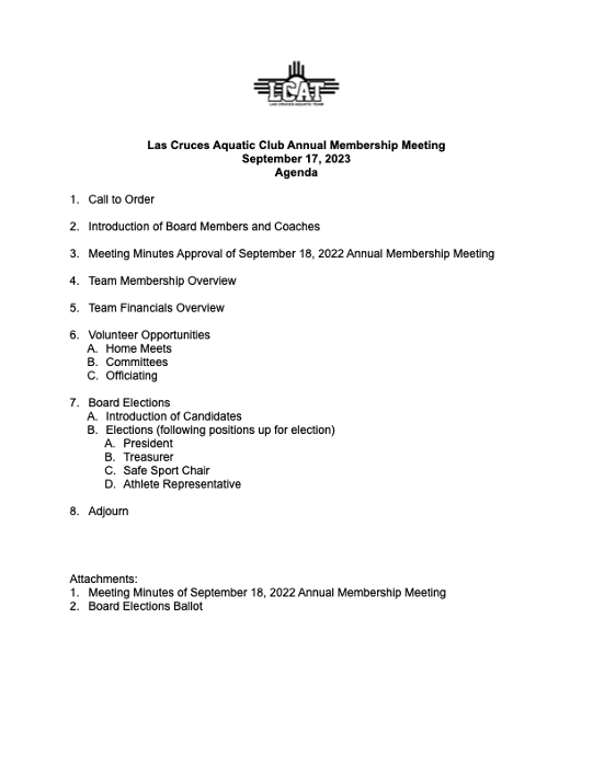 Activities: Socialize and get to know each other (this is for the adults and kids!); membership meeting with Board elections (agenda attached — it’ll be brief!)