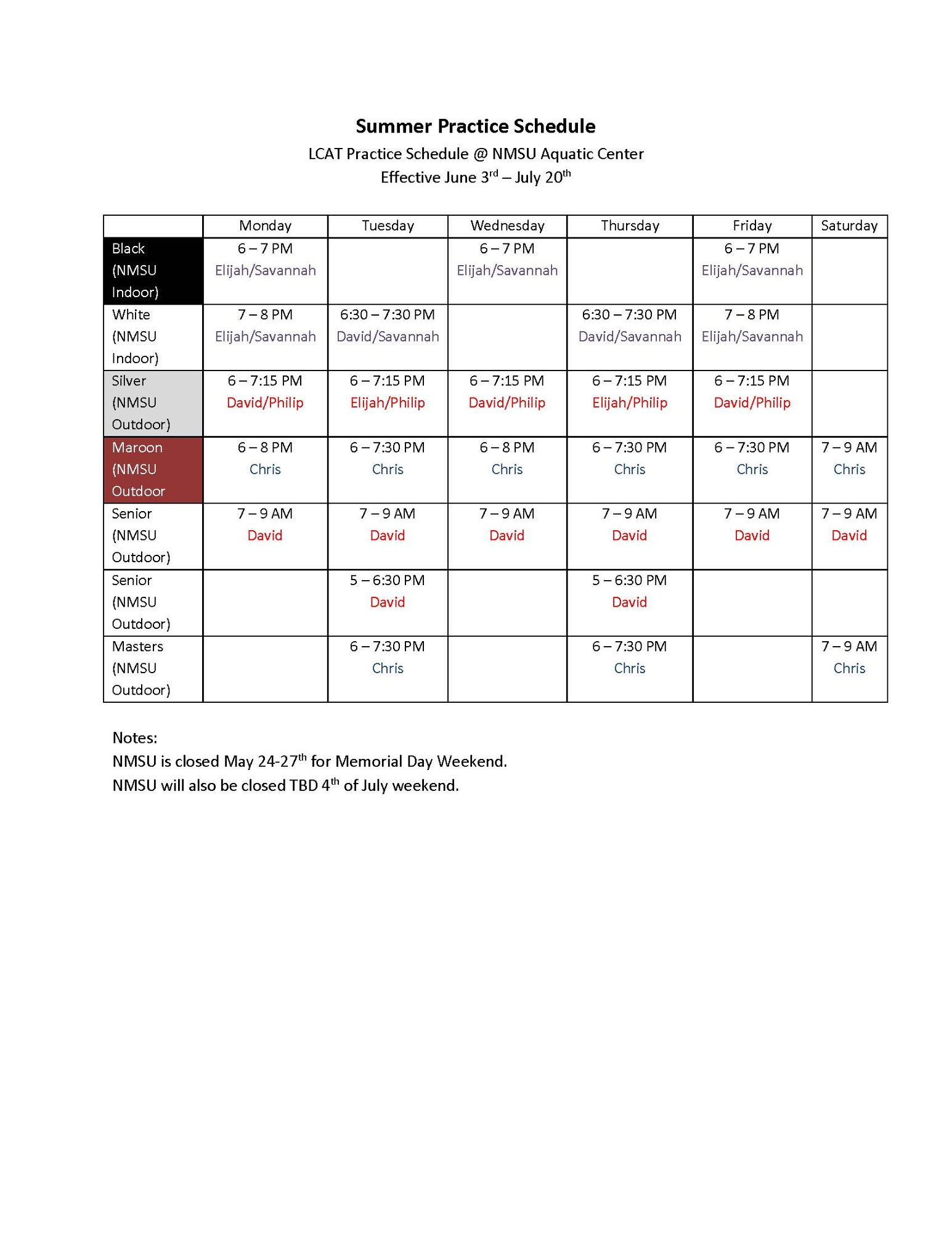 Sending a reminder that the Summer Practice Schedule begins on Monday, June 3rd. Please check it out!