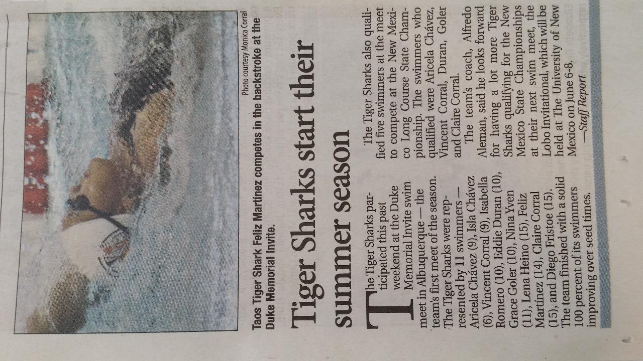 Congratulation to all the swimmers that participated in the Los Alamos Swim Meet. Awesome performance from all the swimmers! Go Tiger Sharks!