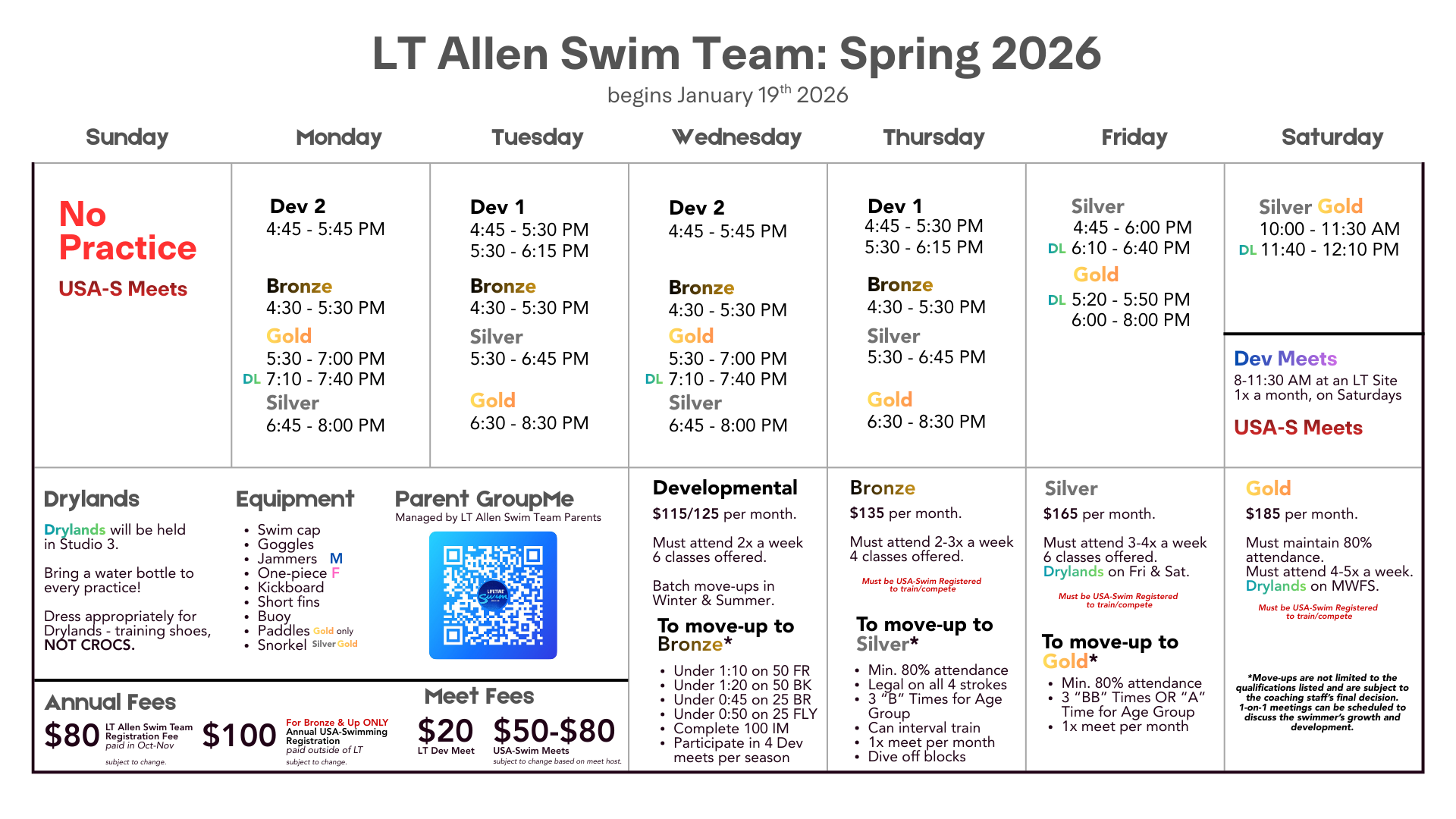LT Allen Swim Team - Spring 2026 Practice Schedule