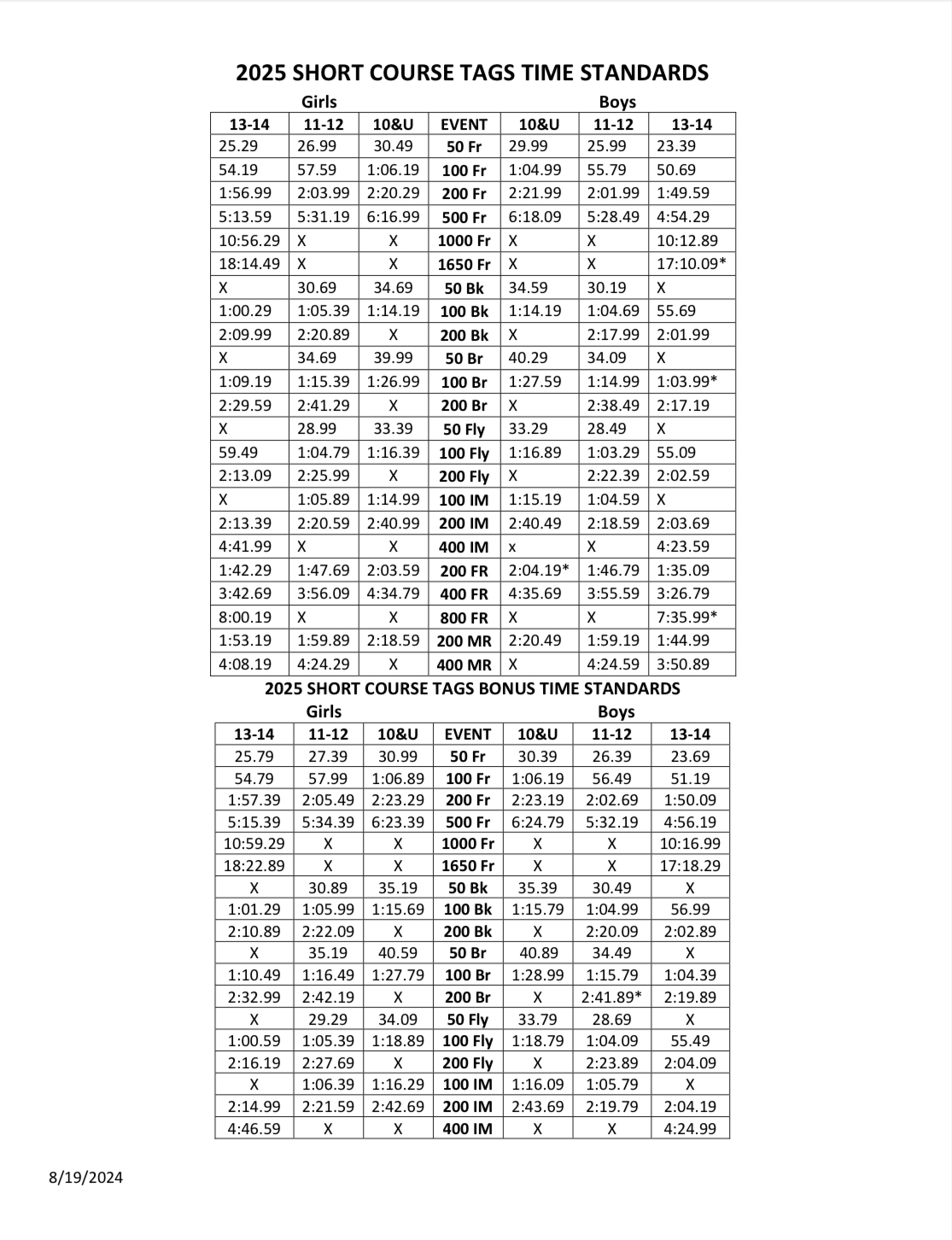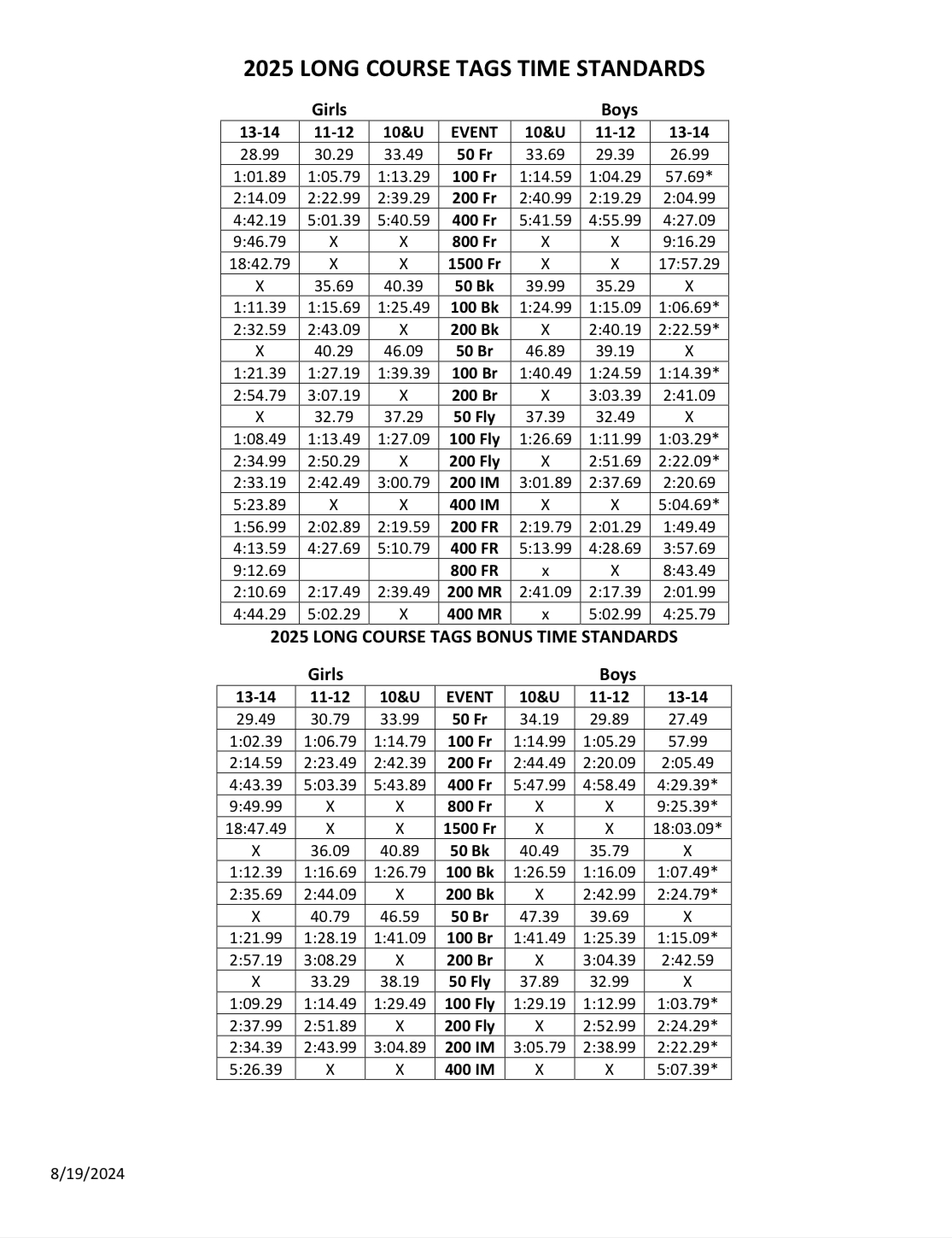 USA Swimming Meet Time Standards