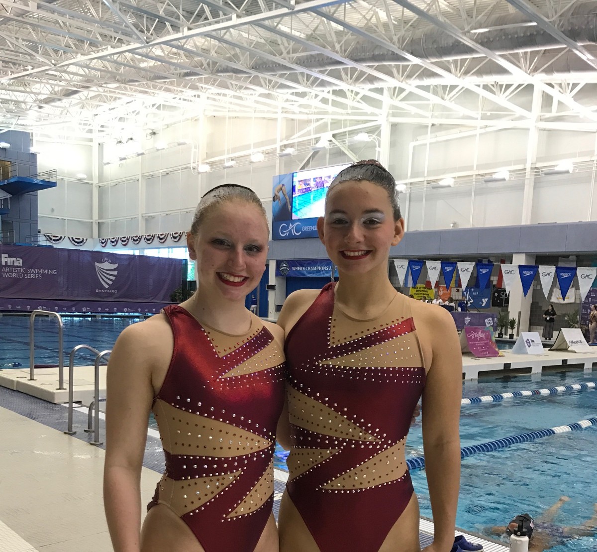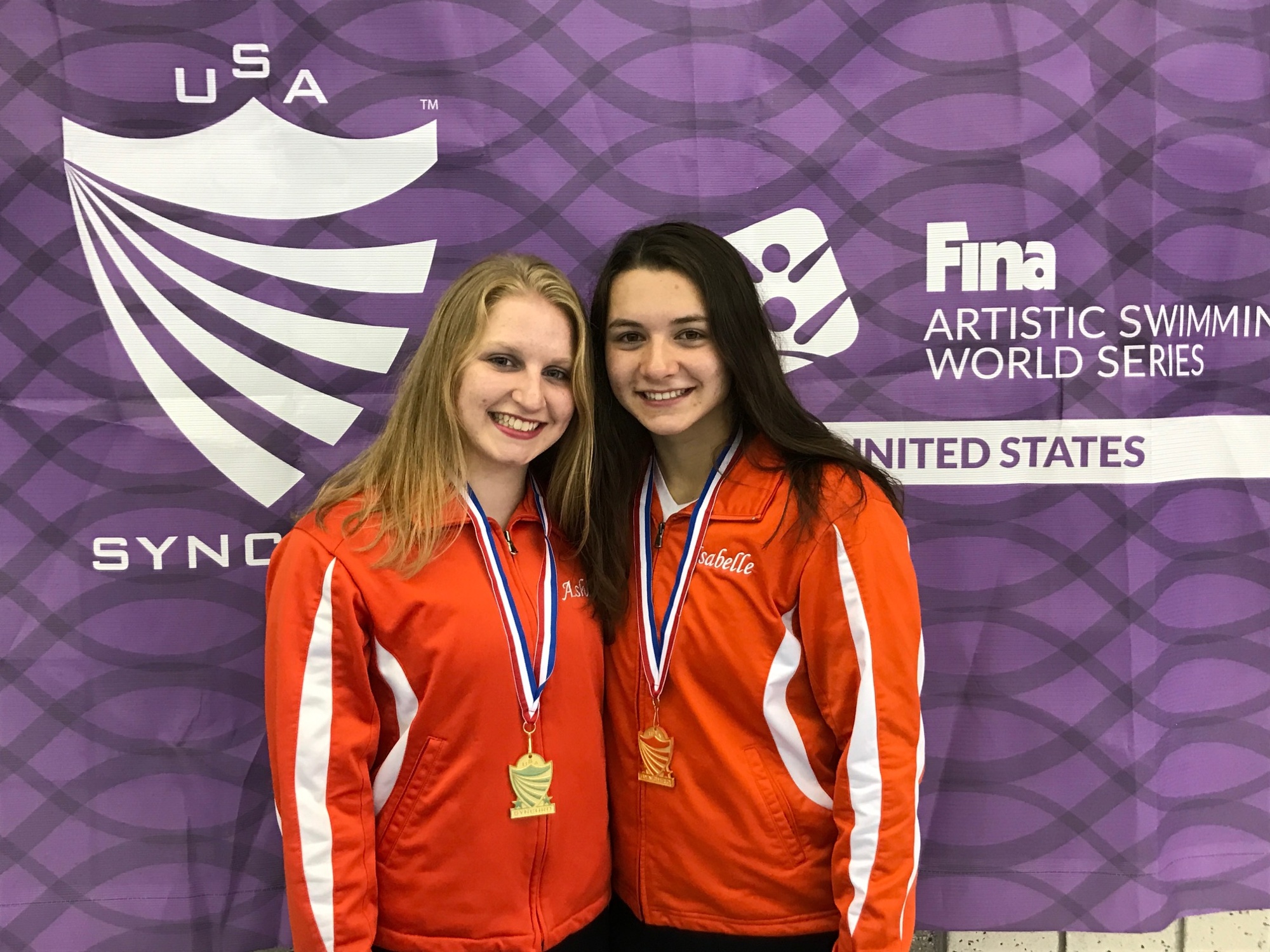 Isabelle Lange and Ashley Latchford struck gold at the US Opens in Greensboro, North Carolina this past weekend. The girls competed in the Junior Technical Duet and Junior Free Duet events, earning the top score and the gold medal in both events.