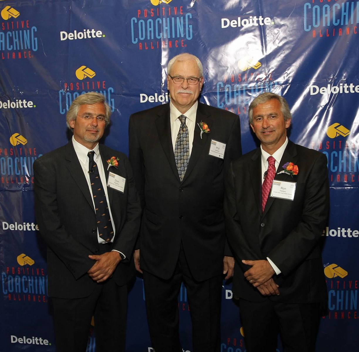 PCA is in partnership with nearly 2,000 schools and youth sports organizations nationwide, impacting nearly 5 million youth. “Don and Ron help youth athletes win in and out of the pool,” said Jim Thompson, founder and CEO of Positive Coaching Alliance. “By creating a positive, character-building youth sports experience, and serving as Double-Goal Coaches, Don and Ron help youth develop into better athletes and better people.” Mark Madsen, NBA Champion and Assistant Coach at Stanford, was the Master of Ceremonies for the event. Phil Jackson, PCA National Spokesman and 11-Time NBA Champion Coach, was awarded the Ronald L. Jensen Award for Lifetime Achievement.