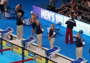 The last day for OA competition was Day Six which began with the fast action in the 50 M freestyle. Sven Campbell (23.83) and OA alum Chris Peterson (23.25) both competed in the event.