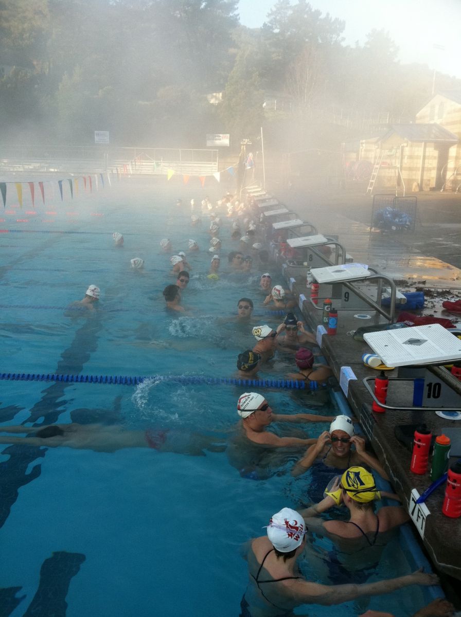 Despite frigid temperatures and rain, once again, the lanes were full at Orinda Aquatic's traditional Senior Group Christmas Eve practice. It is powerful to see both the lanes and pool deck crowded with current swimmers joined by collegiate swimmers and alumni stopping by just to reconnect with the coaches and to be part of the team again. This year's practice focused on the intrinsic meaning of giving. Happy Holidays to all.