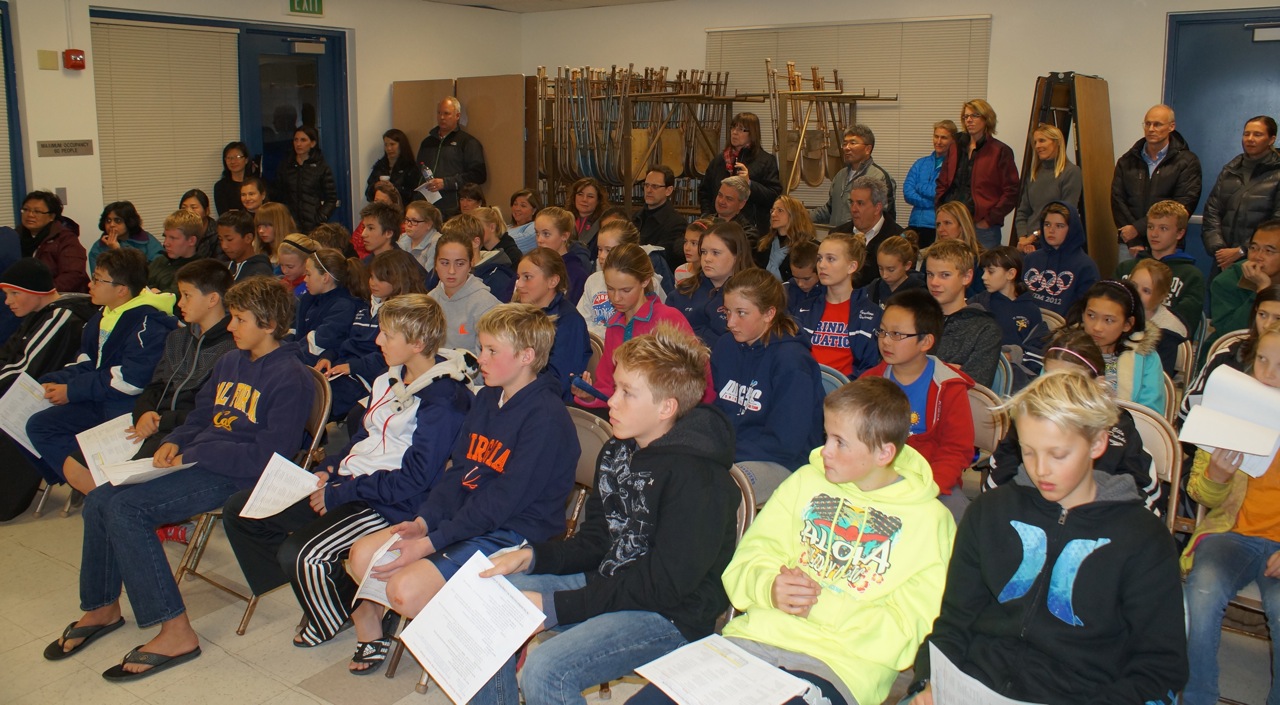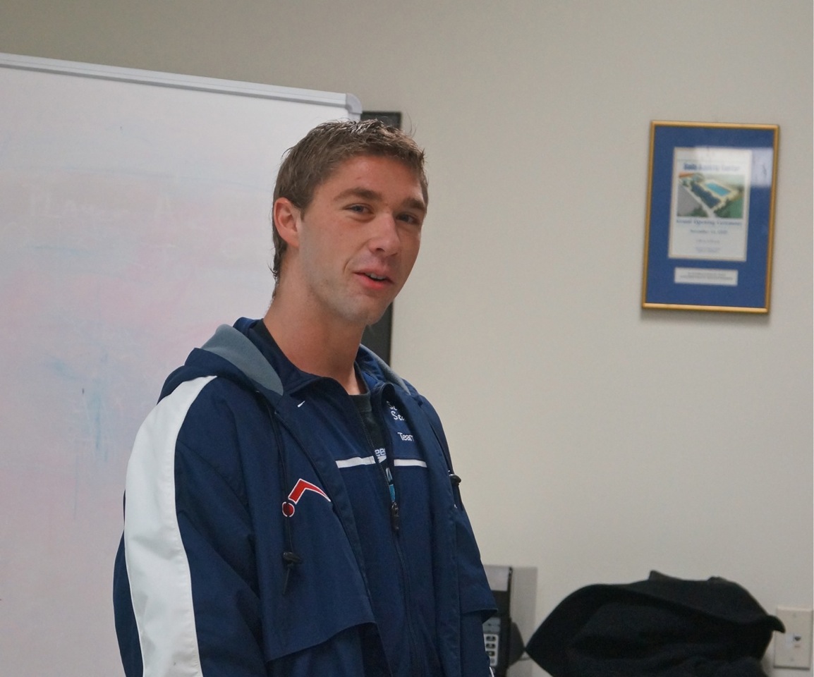 It was a full house at the Soda Center last night as the Junior Group and their parents showed up in force to listen to Steven and Ronnie talk about Steven's "journey" at Orinda Aquatics. Steven had previously been a rec swimmer when at 12 years old, his family met with numerous local year round swim clubs, ultimately choosing to join Orinda Aquatics' Junior Group. Despite 2 broken wrists and several injuries along the way culminating in double hip surgery in 2011, Steven's career has soared. His most recent success was breaking the Jr National Championship meet record in the 200 breaststroke. Ronnie spoke at length about Steven's unwavering work ethic, determination, humility and focus every day and every lap along with the balance that Steven has found between swimming, academics and social activities. They also shared the goal sheet that he and Steven have used as training guidelines over the last three years. Steven entertained with his stories, his insights, his advice (visualize) and his encouragement of the younger swimmers on the team. Thank you to the Stumph Family, the coaches and Tracy Fu for organizing the event.