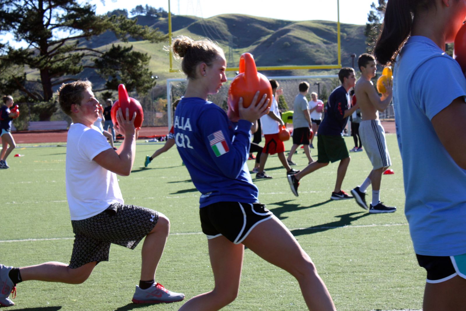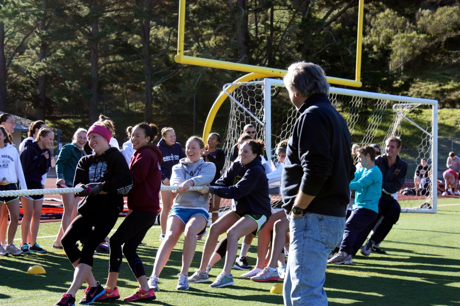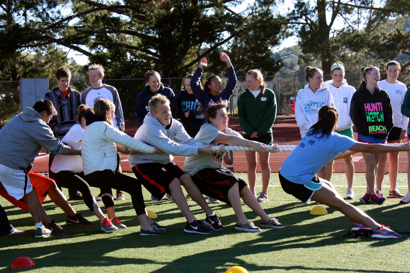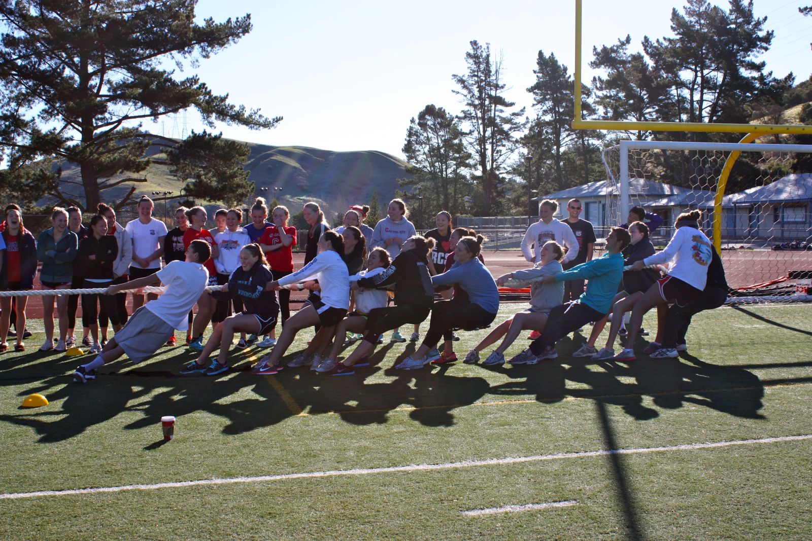 On a recent very cold Saturday morning (California standards), instead of finding themselves in the pool, the Senior Group migrated to the football field for team bonding, tug-a-war and relay competitions.