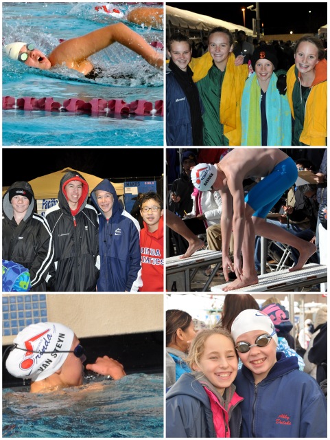 Despite temperatures in the mid 20s, more than fifty Orinda Aquatics swimmers ages 14&U were bigger than the weather competing outdoors at the Pacific Swimming Winter Junior Olympics held in Morgan Hill (December 6 – 8). OA finished in 4th place out of 97 teams and 1200 swimmers qualifying for the meet. Max Cruz (11) swam a blistering 50 fly ranking him second in the nation for his age. Congratulations Max! Some of the other outstanding swims included: