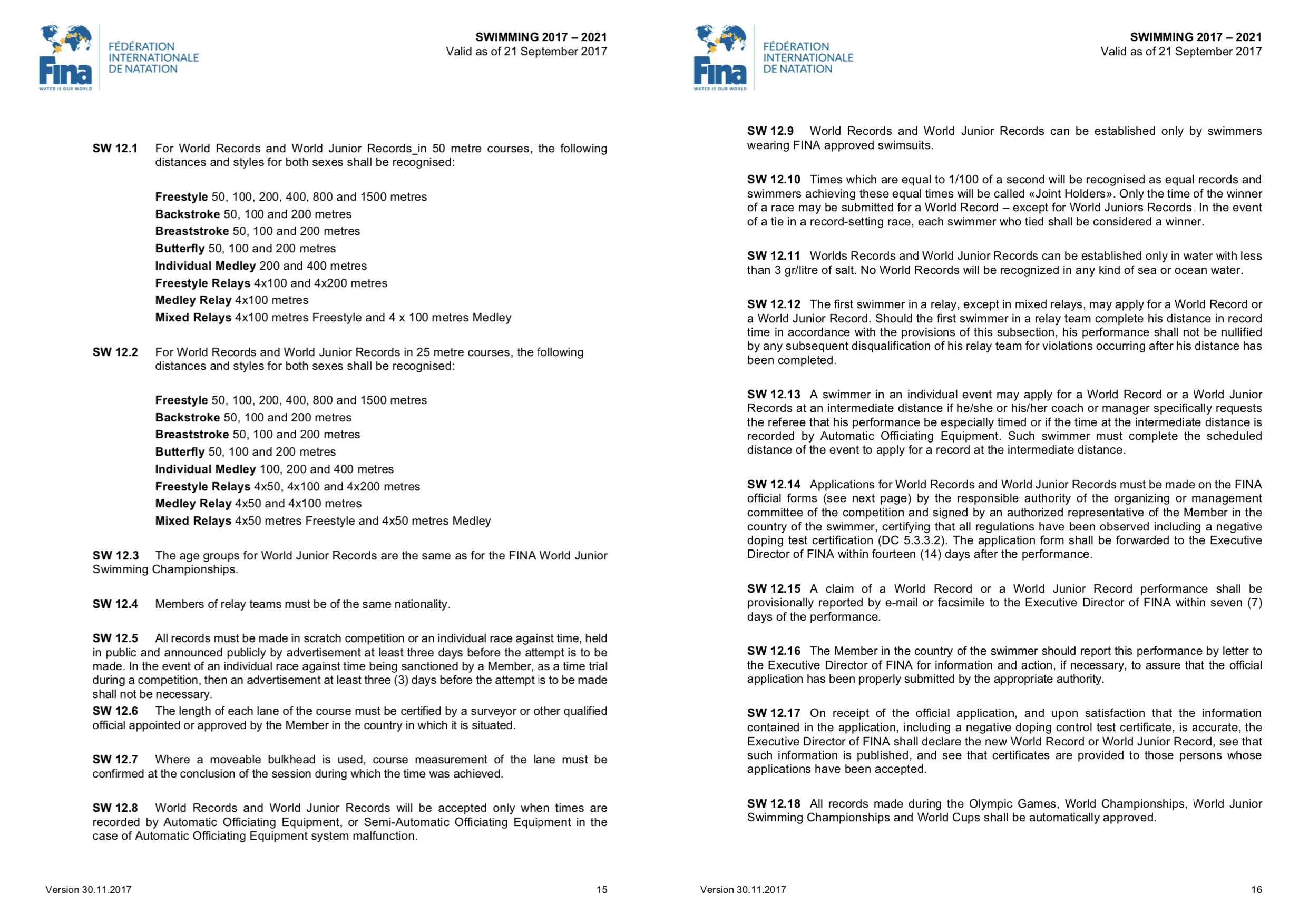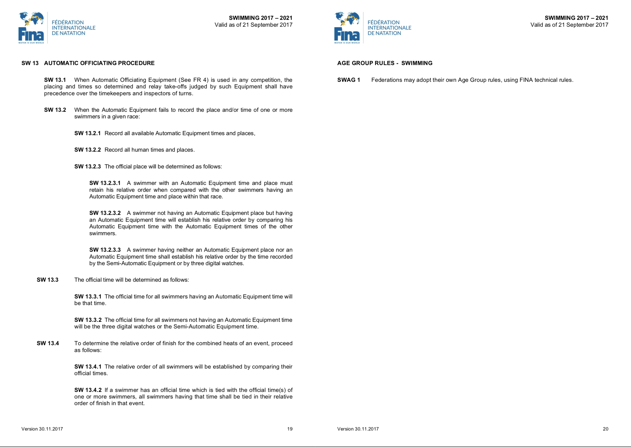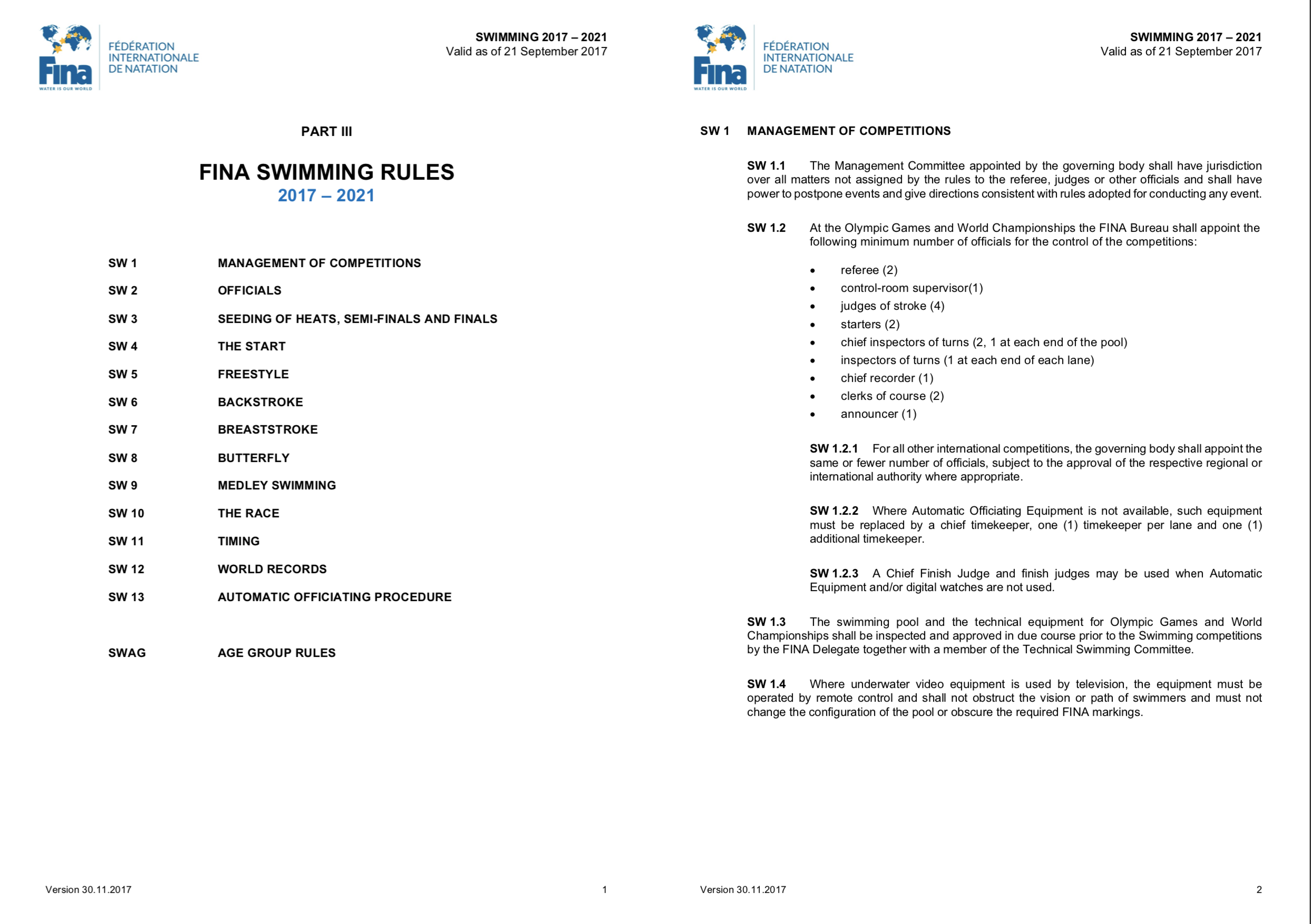 FINA currently oversees competition in six aquatics sports: swimming, diving, high diving, artistic swimming, water polo, and open water swimming.[ FINA also oversees "Masters" competition (for adults) in its disciplines.