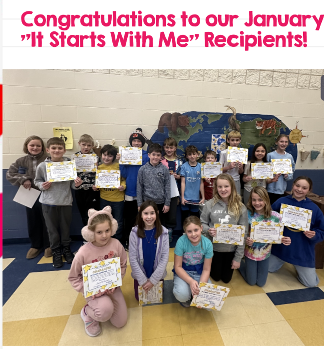 Evelyn Homm and Brynn Matthews were Madiera’s January “It Starts with Me” Recipients! Students are chosen for their kindness and character. Amazing job, Evelyn & Brynn!