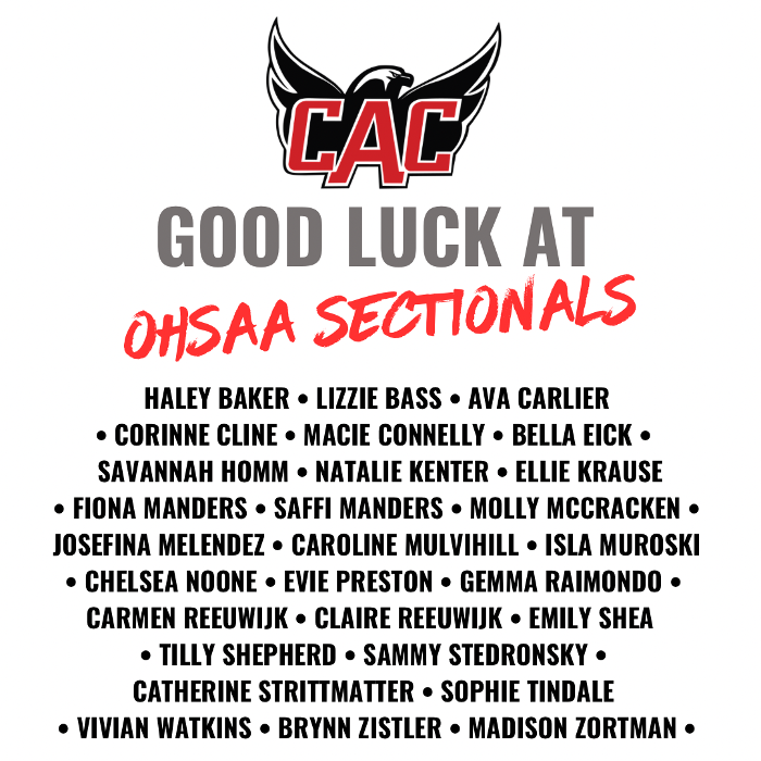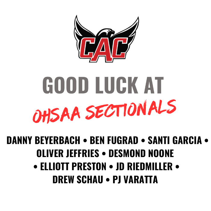 Good luck to the 37 Seahawks competing in the first round of the OHSAA Championship Series! Tonight the Division 1 & Division 2 Boys kick off Sectionals & the Division 1 & 2 Girls will compete tomorrow. There are 4 Sectional locations in the Cincinnati area & CAC will be represented at all 4 locations throughout the weekend.
