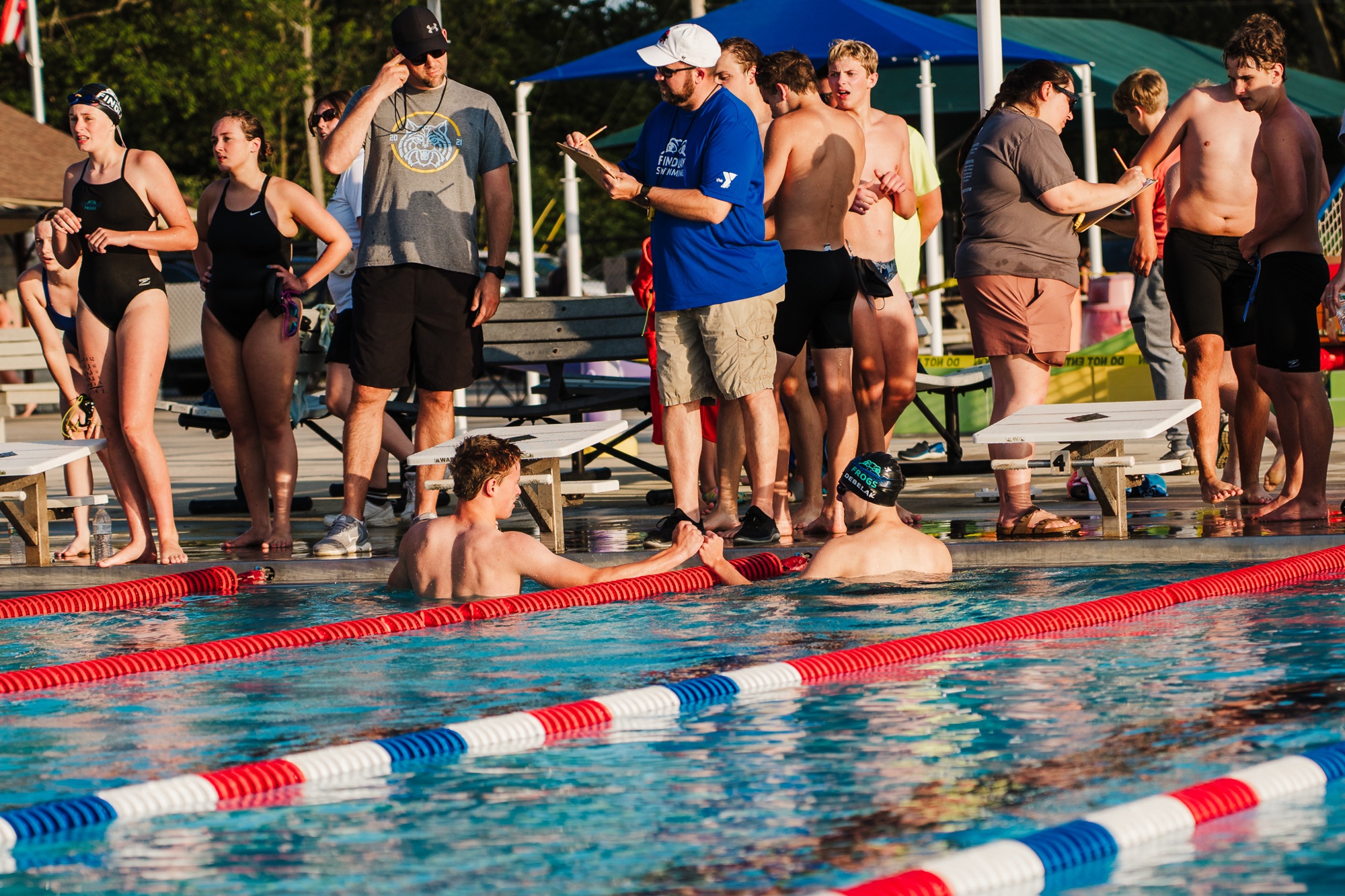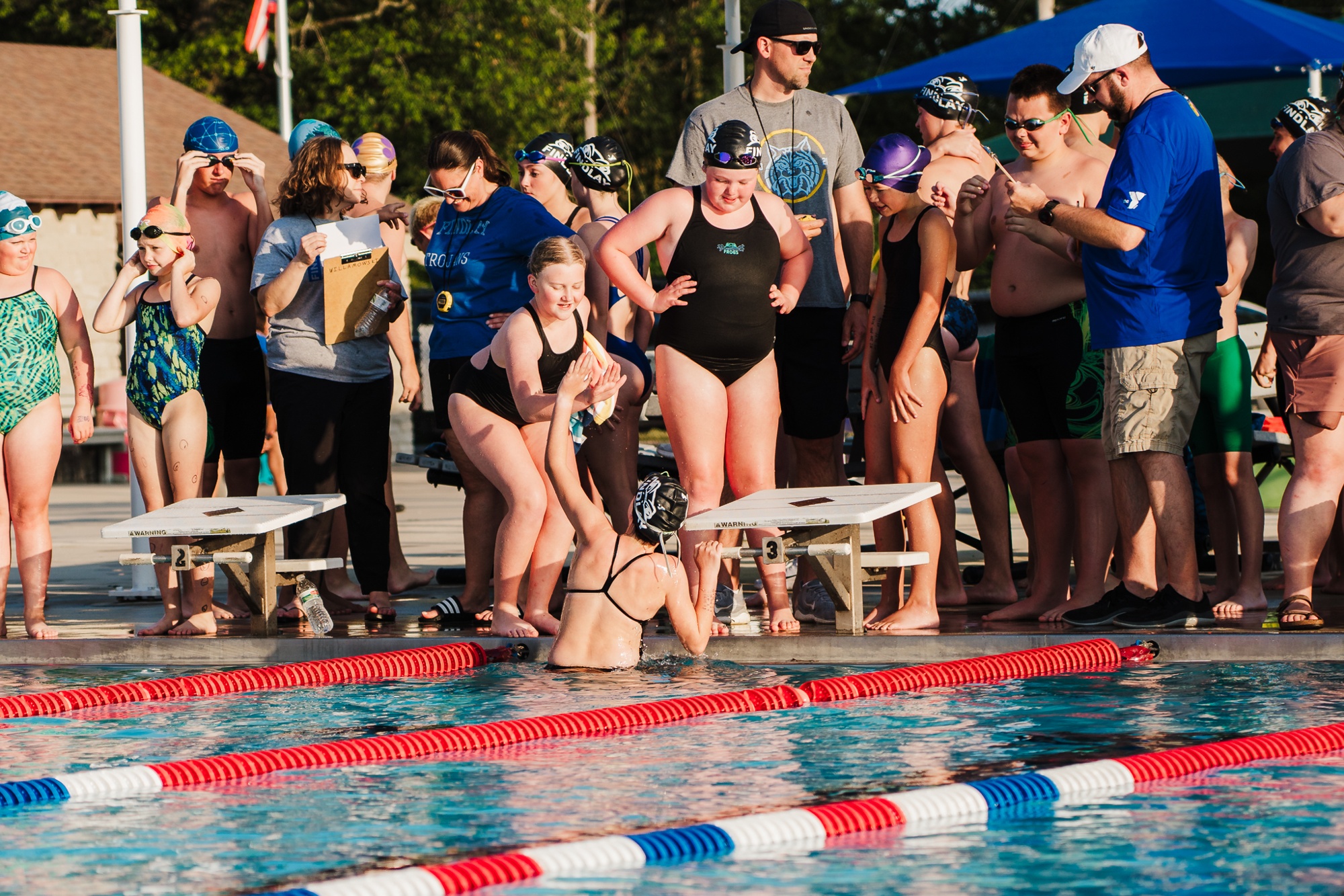 The Findlay YMCA Swim Team is a competitve swim program that serves Northwest Ohio swimmers. To join the team, swimmers must be able to swim one length of the pool freestyle and backstroke.