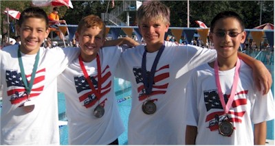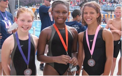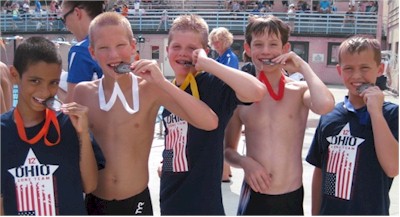 | Check out the "Call me Baby video our very own Ohio swimmers made at the meet (YouTube) Meet: USA Central Zone Age Group Championships Dates: Aug 3-5, 2012 (Team Registration on Thu Aug 2nd, Open Water was held on Monday, Aug 6th) Age Groups: 10 & under, 11-12, 13-14 Location: Donnor Swim Club, Columbus, Indiana - outdoor facility, recently renovated Teams: Ohio, Arkansas, Lake Erie, Midwestern, Missouri Valley, Oklahoma, Ozark, Indiana Ohio Coaches: George Leatherman (BGSC), Michael Cobb (DR), Trish Schoenlein (RAYS), Russell Jurg (OSSC), Matt Celik (USA), Darrah Desmond (SYL), Sue House (CM), Robin Vasaturo (FMST) Chaperones: Nancy Sparks, Gordan Kaiser, Teri Eckley Bus Driver: Dale Stern (Buckeye Charters) Ohio Team Coordinator: Brent Peaden Number of Ohio Swimmers: 169, 164 in pool events, 31 in Open Water Ohio Age Group Demographics: 10 & unders: 45, 11-12s: 68, 13-14s: 56 Number of Travel Athletes (11 & overs only): 31 Team Scores - Pool Indiana (1st girls) - 3,771 (203 swimmers) Ohio (1st boys) - 3,692 (164 swimmers) Ozark - 2,526 (75 swimmers) Missouri - 2,140 (90 swimmers) Midwestern - 1,788 (48 swimmers) Arkansas - 1,630 54 swimmers) Lake Erie - 1,587 (66 swimmers) Oklahoma 617 (33 swimmers) Team Scores – Open Water Indiana - 238 Ohio - 200 Missouri - 200 Lake Erie - 97 Ozark - 67 Oklahoma - 62 Midwestern - 30 Arkansas - DNS Top Ohio Individual High Points Scorers 10 & under girls: Jordan Aurnou-Rhees (OSSC) 5th, Mia Brown (USA) 10th 10 & under boys: Carson Foster (CM) 1st, Jacob McDonald (CM) 2nd 11-12 girls: Hannah Foster (CM) 5th, Cassidy Kaiser (DR) 8th 11-12 boys: Josh McDonald (CM) 1st, Eddie Michael (DCST) 12th 13-14 girls: Maddie Schaffer (SPY) 15th, Alyssa Haidet (WAC) 17th 13-14 boys: Grant House (CM) 2nd, Matthew Marquardt (MHSW) 23rd Archived Results on Central Zone Swimming website |