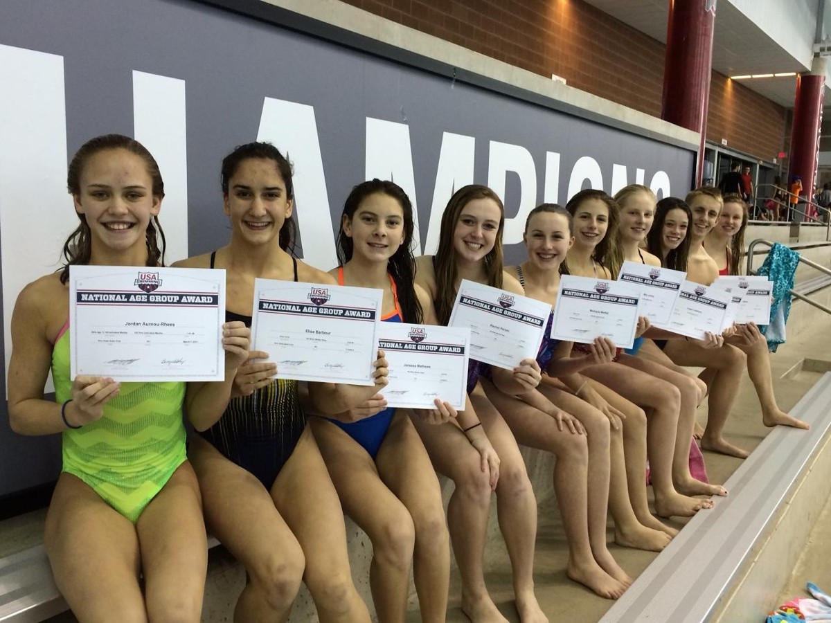 In addition to our phenomenal 10 & under girls, who broke the NAG records in the 200 LC medley relay and 200 LC free relay last summer (read more about that here), we had several other nationally-recognized swimmers in their respective age groups during the 2013-14 season.