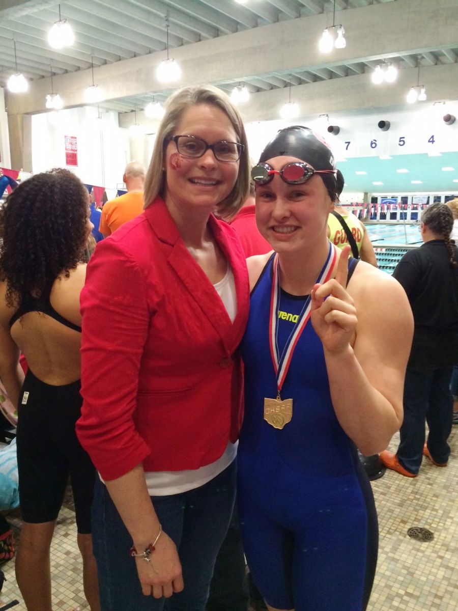 Junior Miranda Donley continued her winning streak in the 50 free, as she won another state championship at 23.12. While she was hoping to swim faster, she still scored huge points for her team and was able to enjoy another state championship swim. Miranda currently ranks 10th in Ohio swimming history in this event.