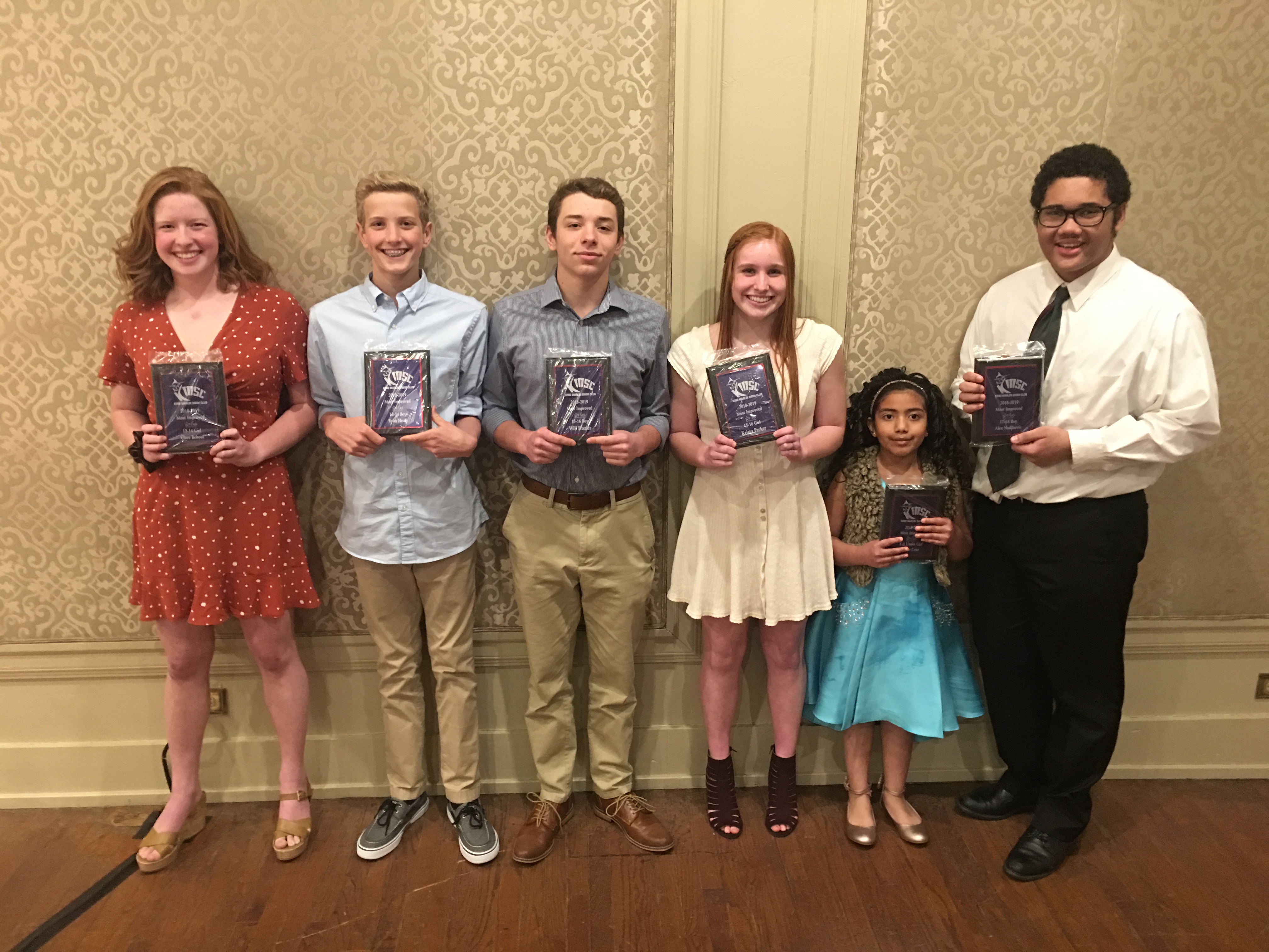KMSC head coaches John Brown, Josh Everett and Kathy Mendez presented the Most Improved Swimmer awards for each age group (pictured above). The recipients included: