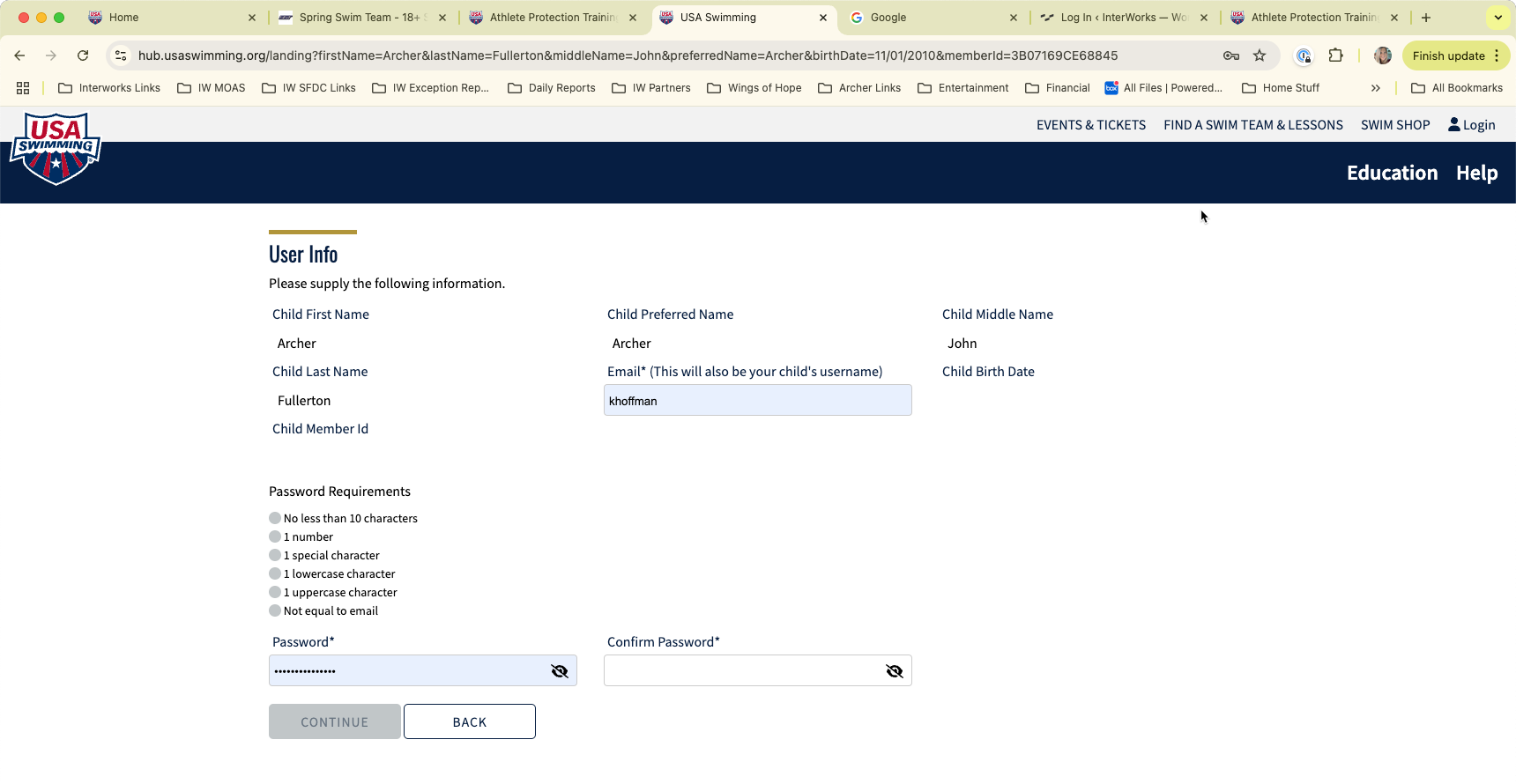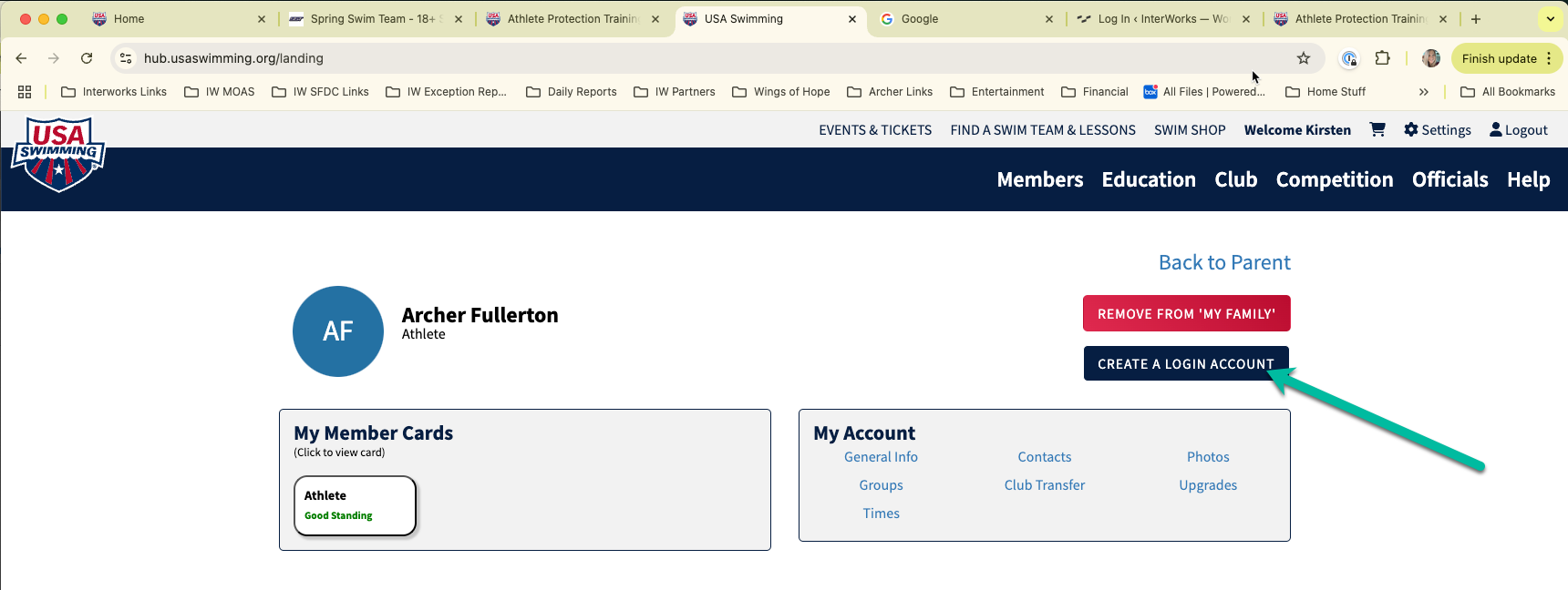 If your parent or guardian purchased your USA Swimming Membership you must first have them create an individual login for you.
