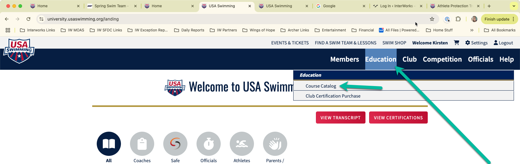 Once the login is available, the athlete must login and select the Education tab menu: