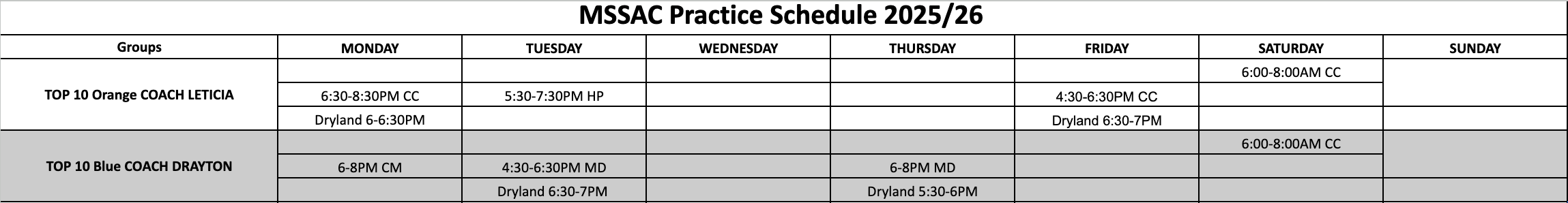 - Group placement is at the full discretion of the TOP 10 Group Coach.