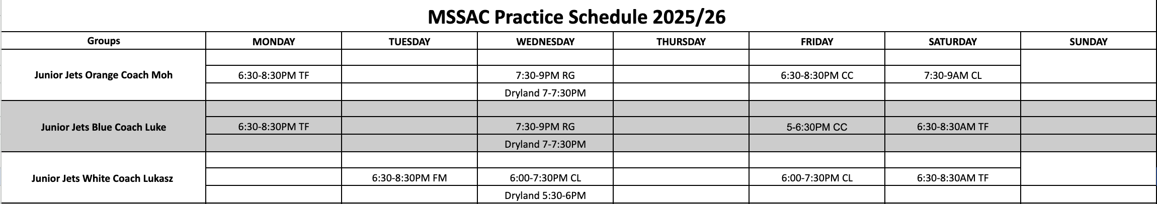 - Group placement is at the full discretion of the Head Coach or Assistant Coach.