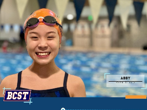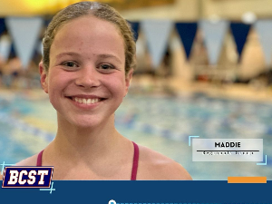 SWIMMER SPOTLIGHT! Everyone meet Maddie who is in the Regionals group and has been on our Team for 4 years! Her favorite stroke is backstroke. Maddie thinks of BCST as a second family and she looks up to her friends who have perseverance and never give up. Maddie loves Coach Dwight’s sense of humor and how fun he makes practice. Her walkout song is Birds of a Feather by Billie Eilish. Maddie’s favorite pizza topping is pineapple and if she had a superpower it would be to stop time!