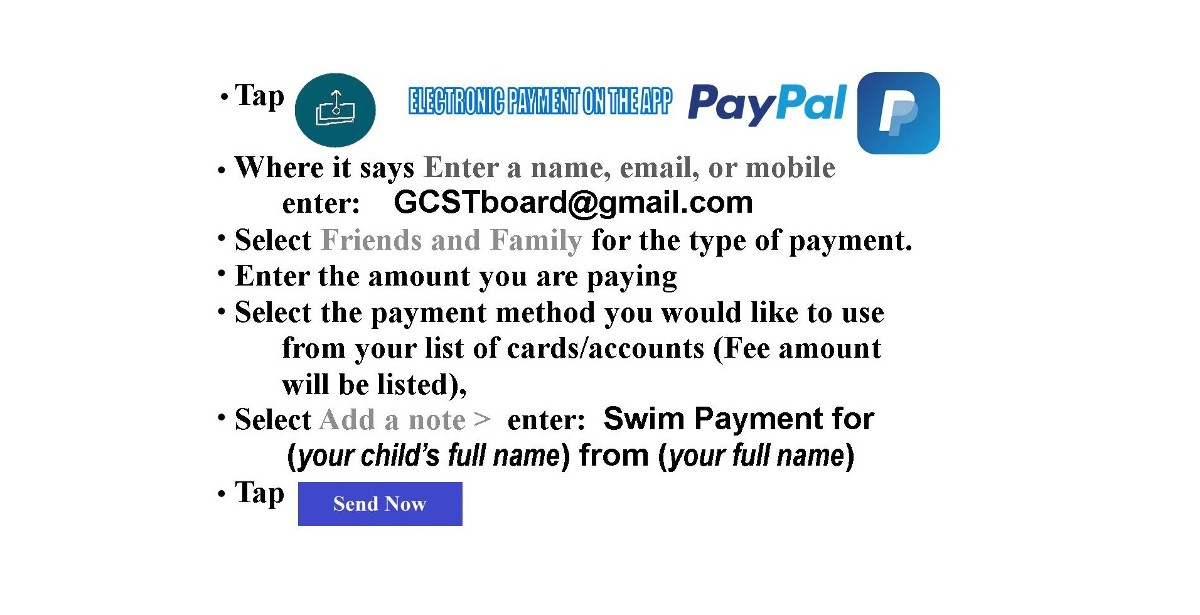 Payment of your invoice balance is due by the 15th of the month. Please write your child’s name on the payment or return payment with the invoice when returning your payment. You may mail your payment to Gold Coast Swim Team, P.O. BOX 1103, COOS BAY, OR, 97420, or leave payment in the "Payment/Suggestion box inside the pool house. Please make checks payable to GCST. You may also pay online via PayPal. Find us at PayPal.me/GoldCoastSwimTeam. Remember to select "friends and family."