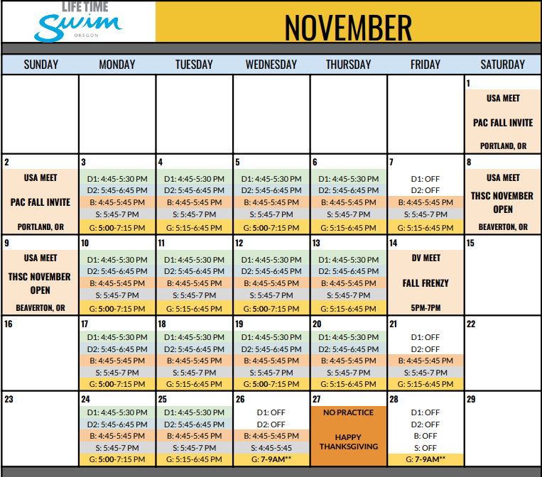 Achieving a qualifying time in the appropriate age group allows swimmers to compete in the Oregon State Championships. The championship dates for this season are as follows: