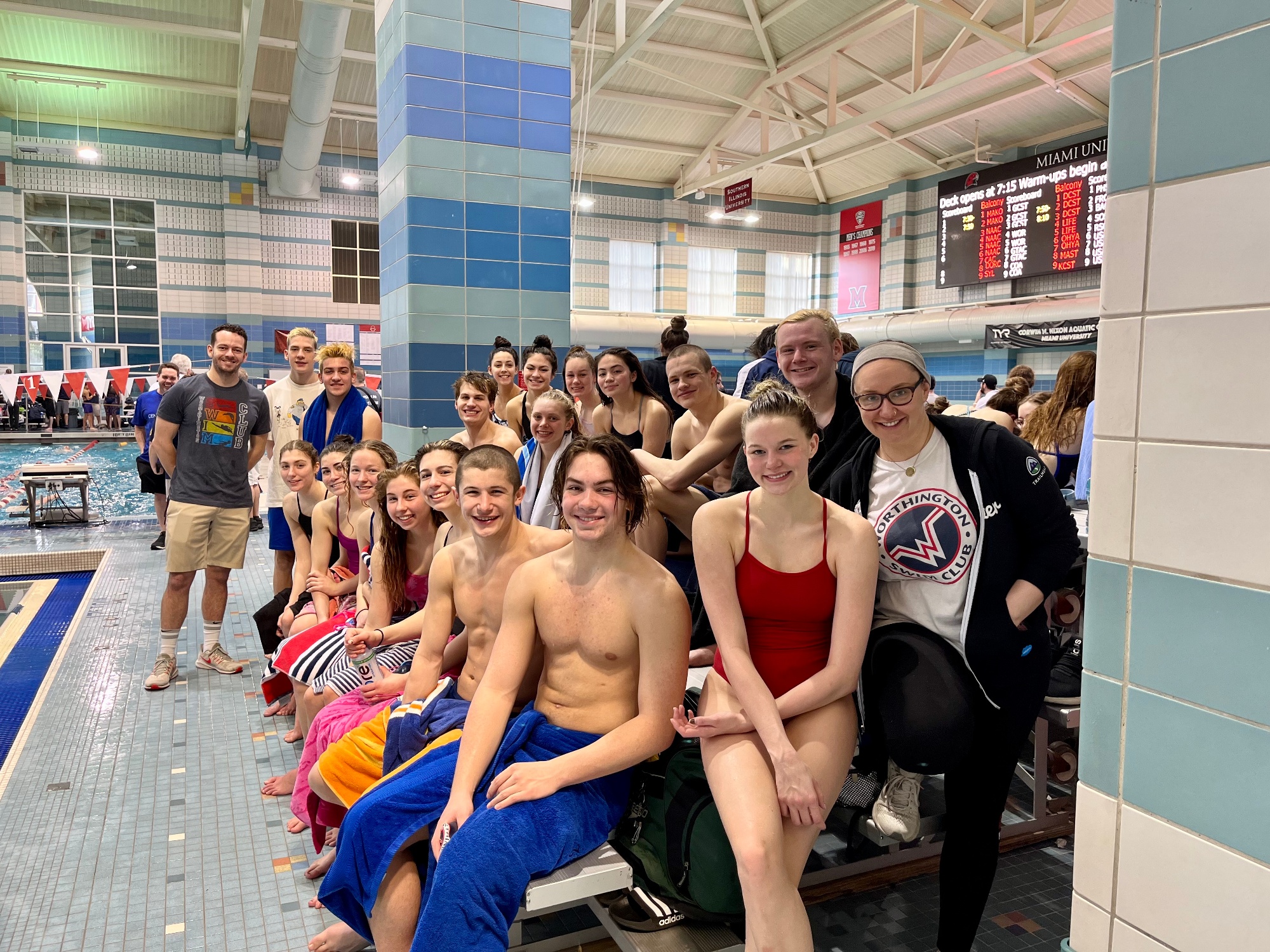 In the Fall of 2025, we are moving into the brand new indoor natatorium on the campus of Thomas Worthington High School. The indoor pool is a 10 lanes, 25 yards pool with an adjacent multipurpose room that is used daily for dryland training and team meetings. In competition, we display our state-of-the-art LED scoreboard, timing system and starting blocks with track-start wedges.