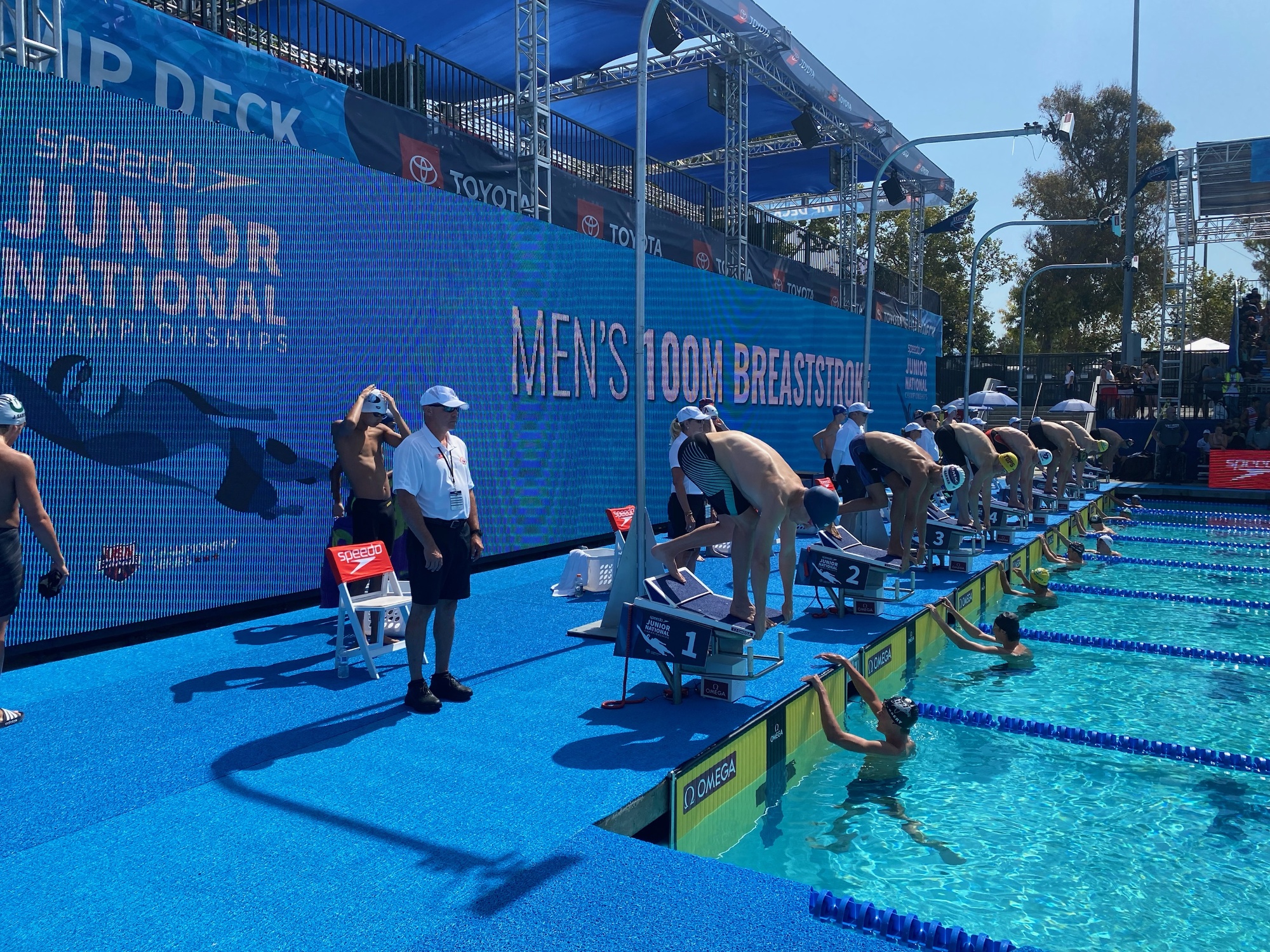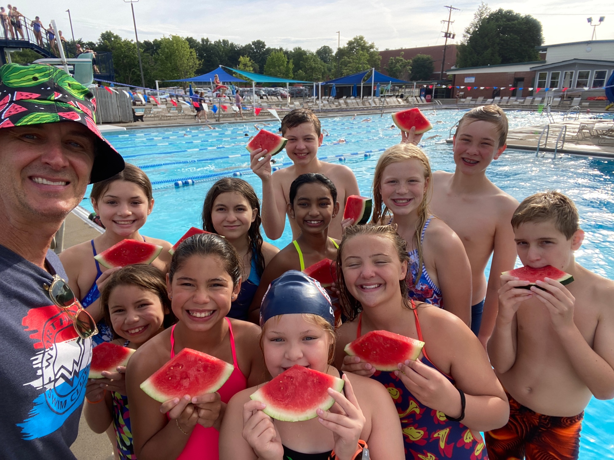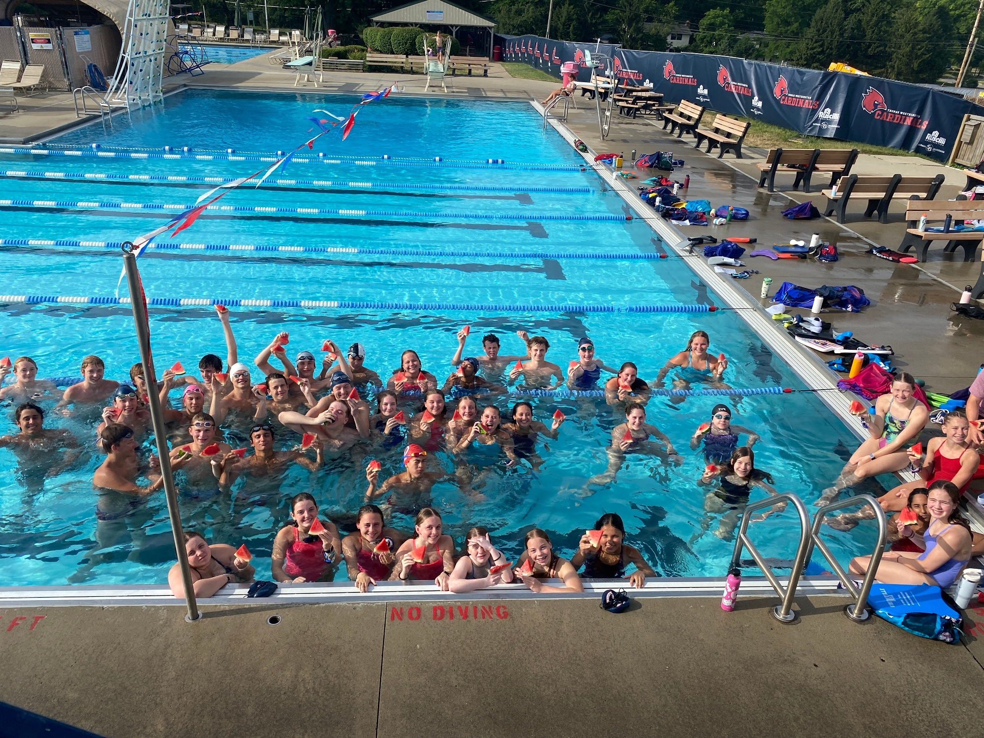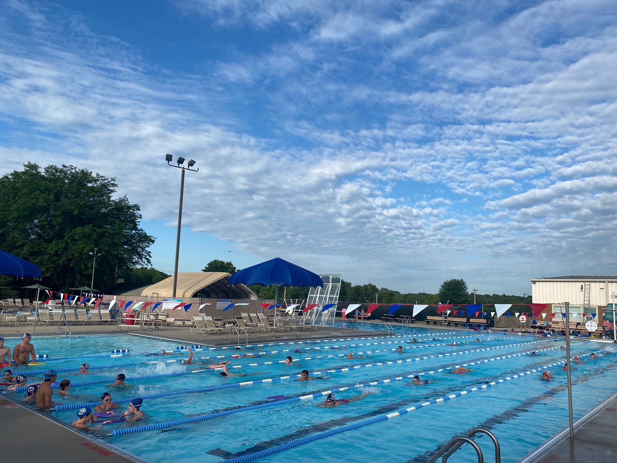 In the summer, our outdoor pool is a 6 lanes, 40 meters pool for long course training. In the Summer of 2027, we will be moving into an outdoor, 8 lanes, 50 meters pool.