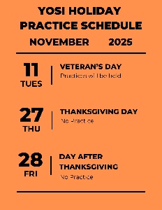 Reminder: No practices on 11/27 & 11/28. We hope all of our YOSI families have a wonderful holiday weekend!