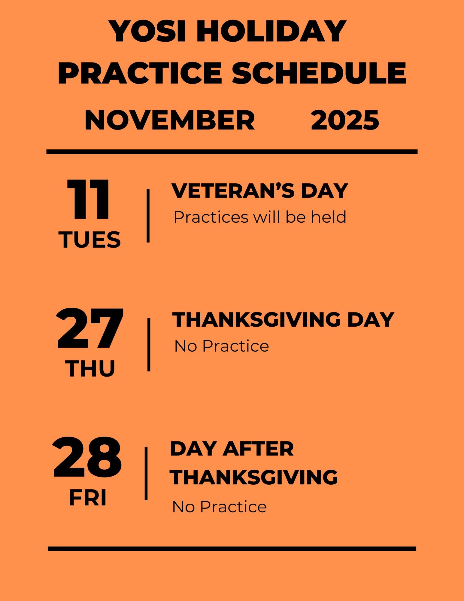 To help you with your holiday planning, attached is the November holiday practice schedule.