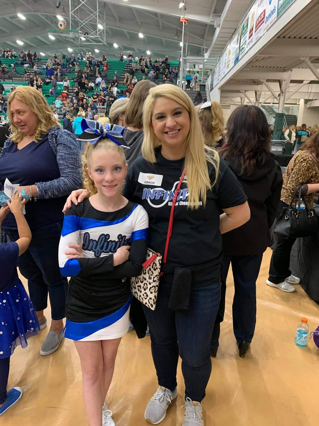 Infinity All-Star Cheerleading is owned and operated by Courtney Baker. Courtney has over 25 years of experience teaching both competitive gymnastics and All-Star cheerleading, as well as gymnastics classes and tumbling. Courtney is a USASF member, certified USASF Safety member and NFHS certified. Coach Courtney coaches Mini, Youth, Jr and Sr. 2.2 teams, as well as all tumbling classes.