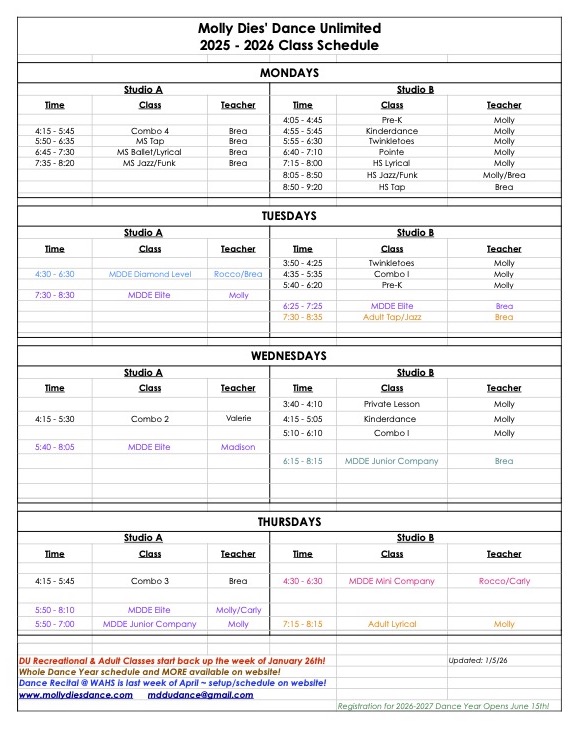 2025-2026 Classes At-A-Glance