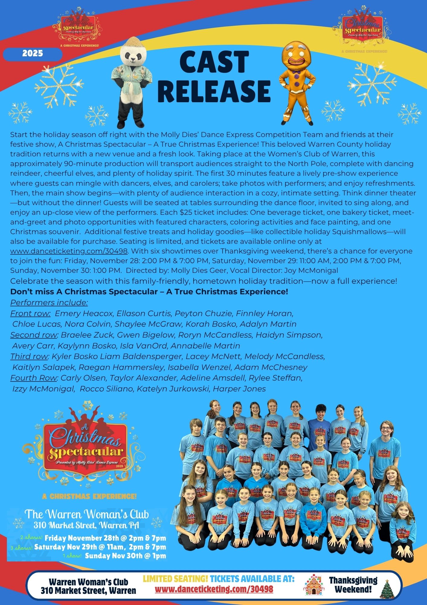 Women’s Club of Warren, this approximately 90-minute production will transport audiences straight to the North Pole, complete with dancing reindeer, cheerful elves, and plenty of holiday spirit.