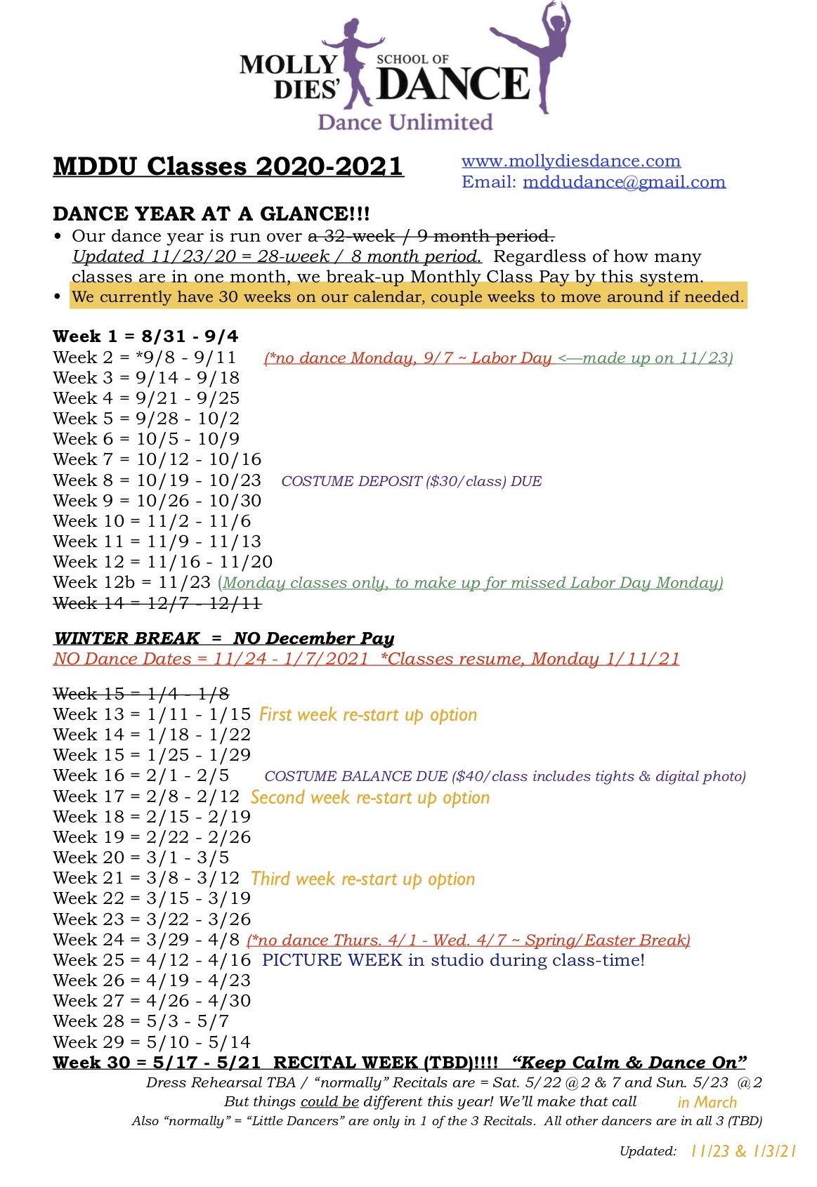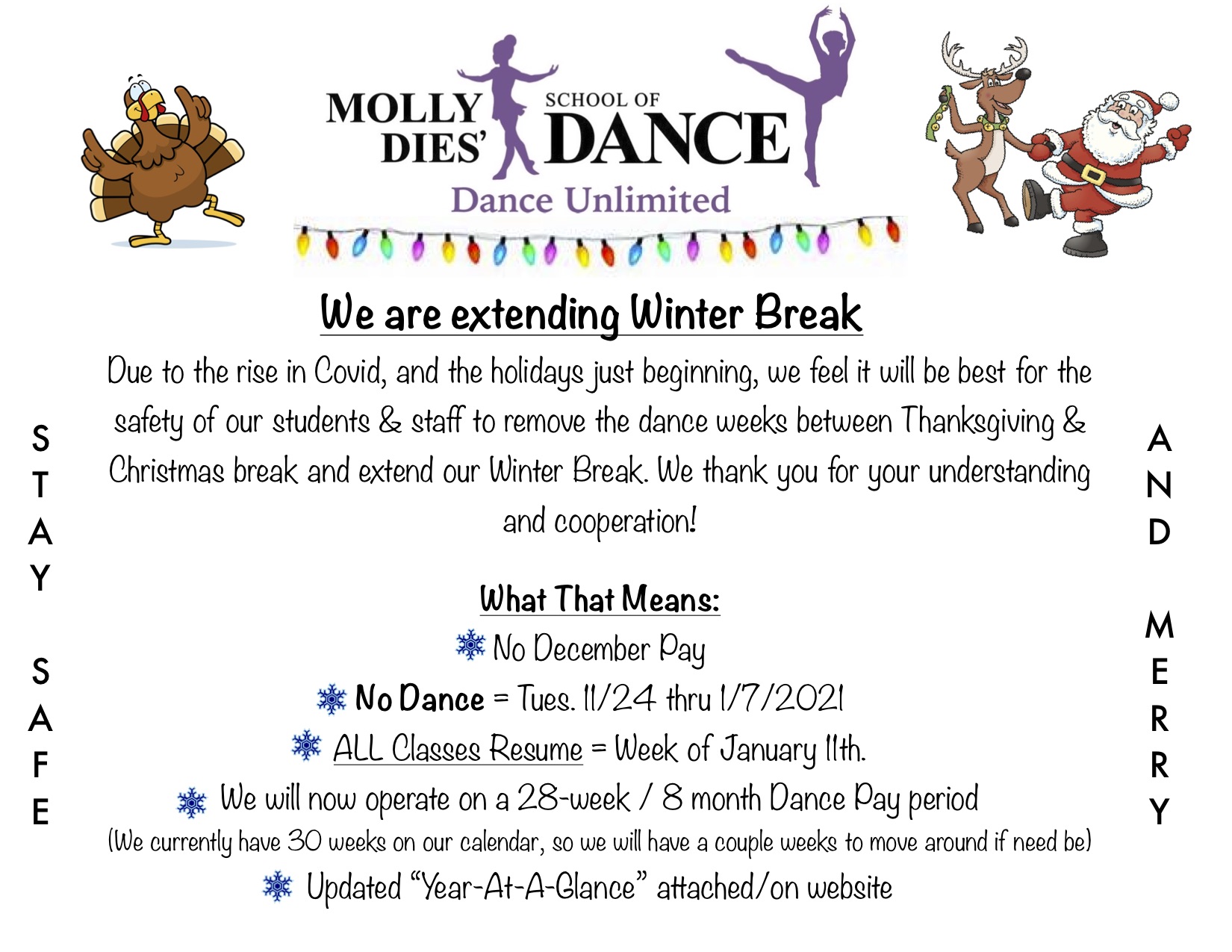 NO DANCE (Holiday Breaks) *These are the ONLY dates we do NOT have dance classes!
