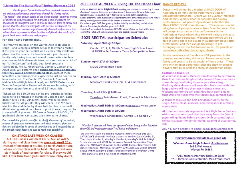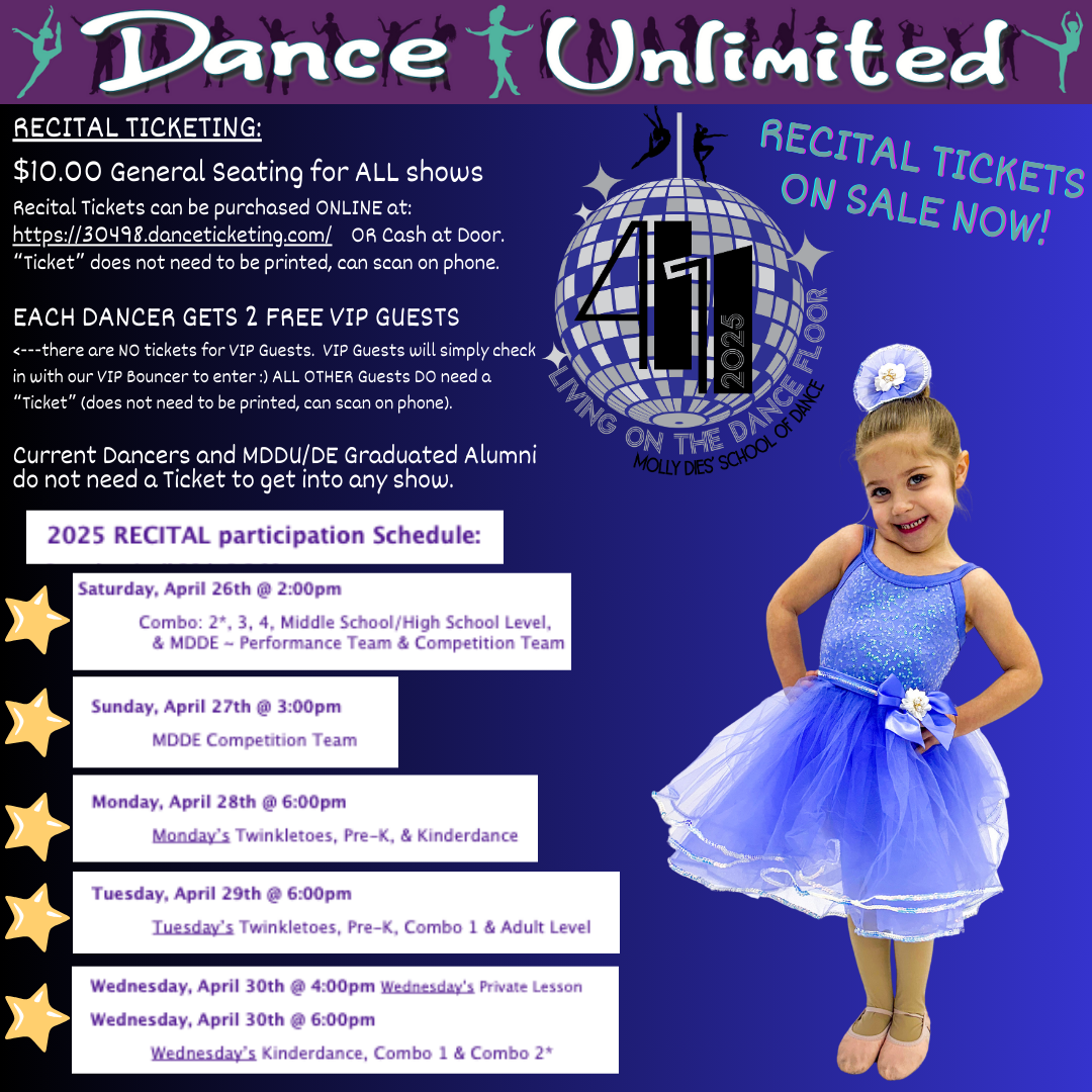 2023 DANCE RECITAL INFO BELOW. Scroll up for 2024 RECITAL INFO.