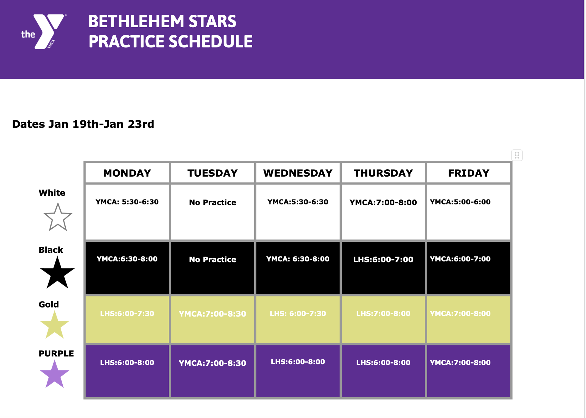Attached in this post is the practice schedule for this week. All entries for Madison Division Championships entries are due Sunday, January 25th.