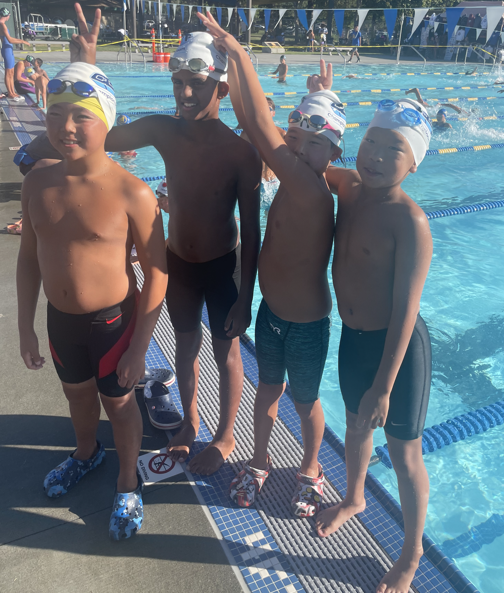 Our 15-18 boys(Edward Huang, Ryin Ruaboro, Justin Ely, Leo Gao, Eric Meng) posted very competitive times at relays at the local summer championships meet, Far Western Championships. They got 3rd place in the 200 M Free Relay and 2nd in the Medley Relay. Our 10 & Un Boys Relays(Andy Bi, Kumar Gautham, Justin Huang, Maximus Wang) got 4th in both Free and Medley. CDST placed 15th overall in the team scores. There were a total of 100+ teams at this traditional summer-end age group championships meet.