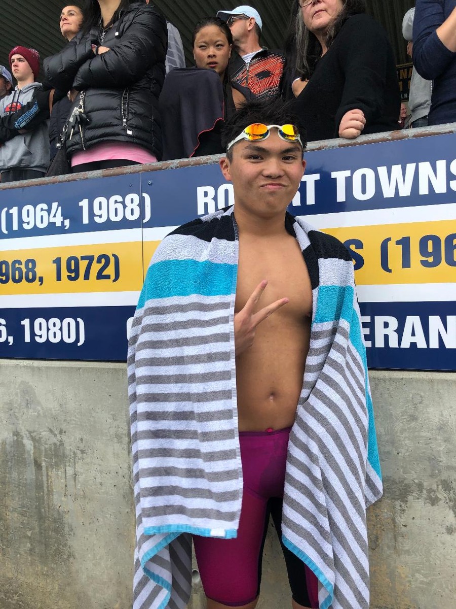 Edward Huang aged up a few months ago. He only has his best event, 100 Back qualify for the Far Western. As the youngest swimmer in his new age group, he dropped half second and the new best time is 58.43.