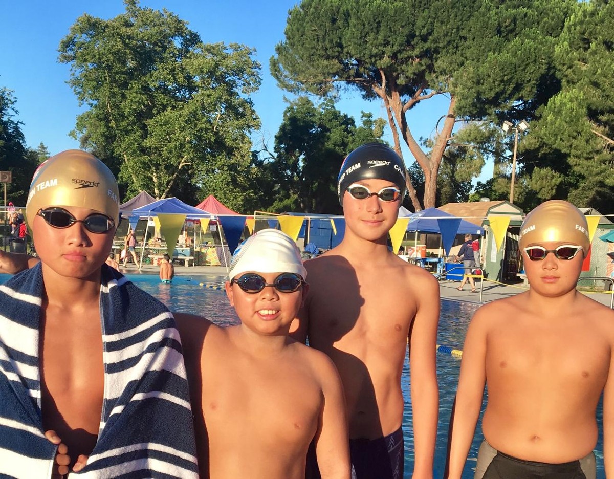We also had many experienced Swimmers at JO’s like Edward Huang (13), who lead the way Friday by achieving a Far Western Time during Prelims in his 100 Backstroke, then continuing to drop 2 seconds at Finals placing 5th with a personal record. Throughout the Meet Edward also achieved Far Western Times in the 50 Freestyle (placing 6th), the 100 Freestyle (placing 3rd) and a P.R. in the 200 Backstroke. He leads 13-14 Boys in both the 200 Freestyle and Medley Relays and anchored the 400 Freestyle Relay with Elton Lee, Mazen Bayoumi, Moataz Bayoumi, and Ryin Ruaboro. The five boys together achieved Far Western Relay Times in both the 200 Freestyle and Medley Relays.