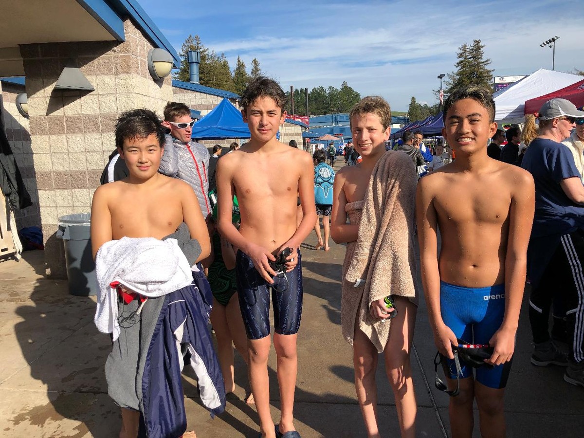 We have two outstanding swimmers at Zone 2 Championships, Justin Ely and Eric Meng ; both of them finished Top 8 in the 11-12 Boy over-all score. They also have been selected to Zone 2 All-Star Team. Alex Wang did very well on his first Zone 2 Championship appearance. On the girls' side, Justine Overbeck-Chilcoat dropped 3 seconds in her 200 Free, with the new best time, 2:24.38.