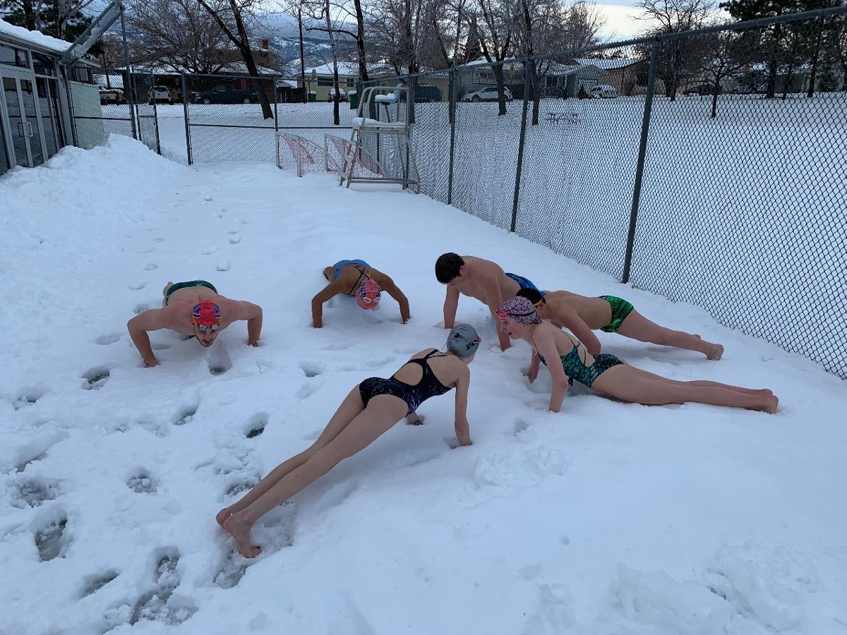 NNA tried a very ambitous training revenue this winter break. We had 23 practices over two weeks and over 125 thousand yards. Several athletes tried. Only a few were able to finish it all. You can see some of our tougher athletes doing dryland in the posted pictures. The athletes that made at least 20 practices were allowed to go on a training trip.