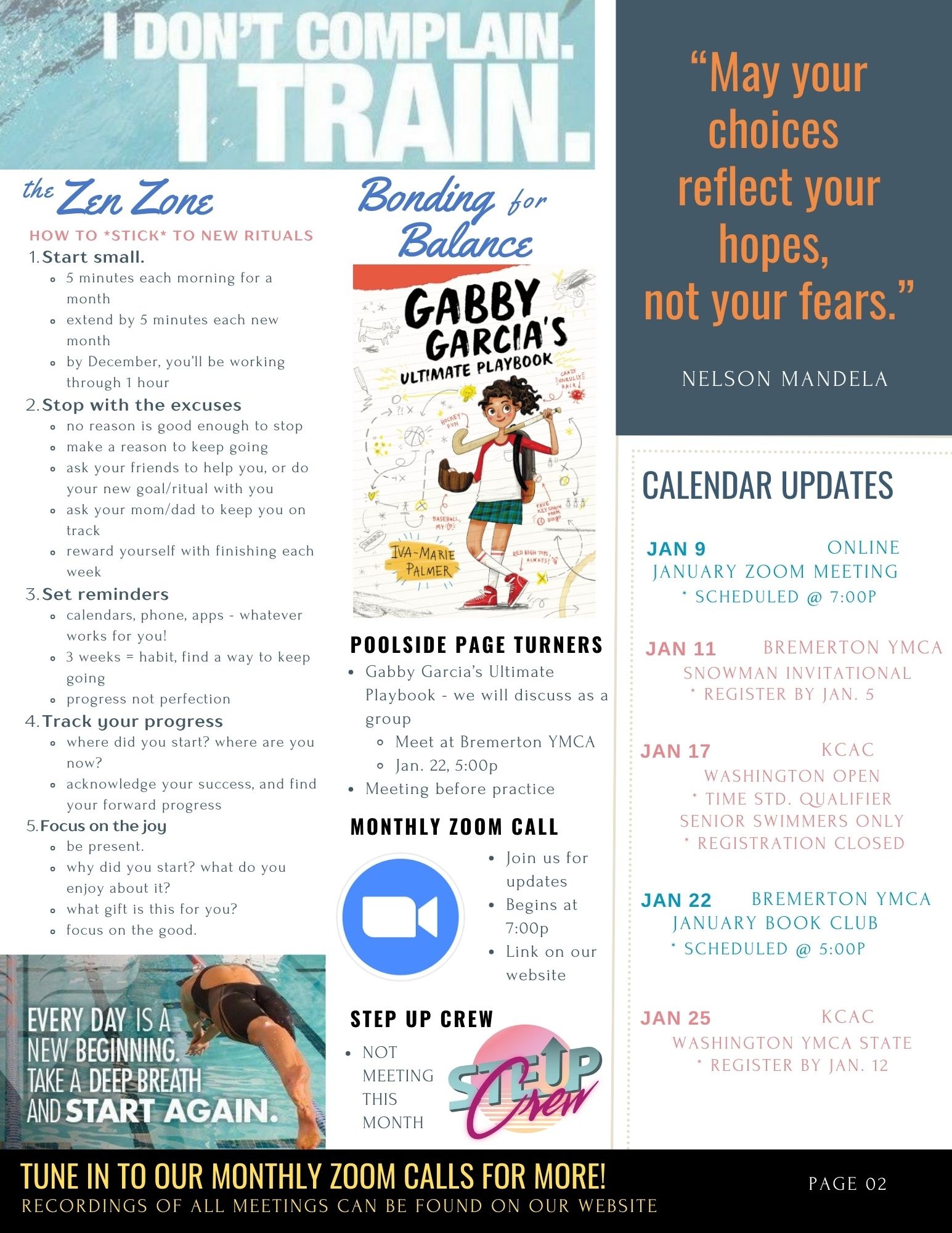 2. Zoom Call will be hosted online - Jan. 9 - for updates with Coach Marilyn.