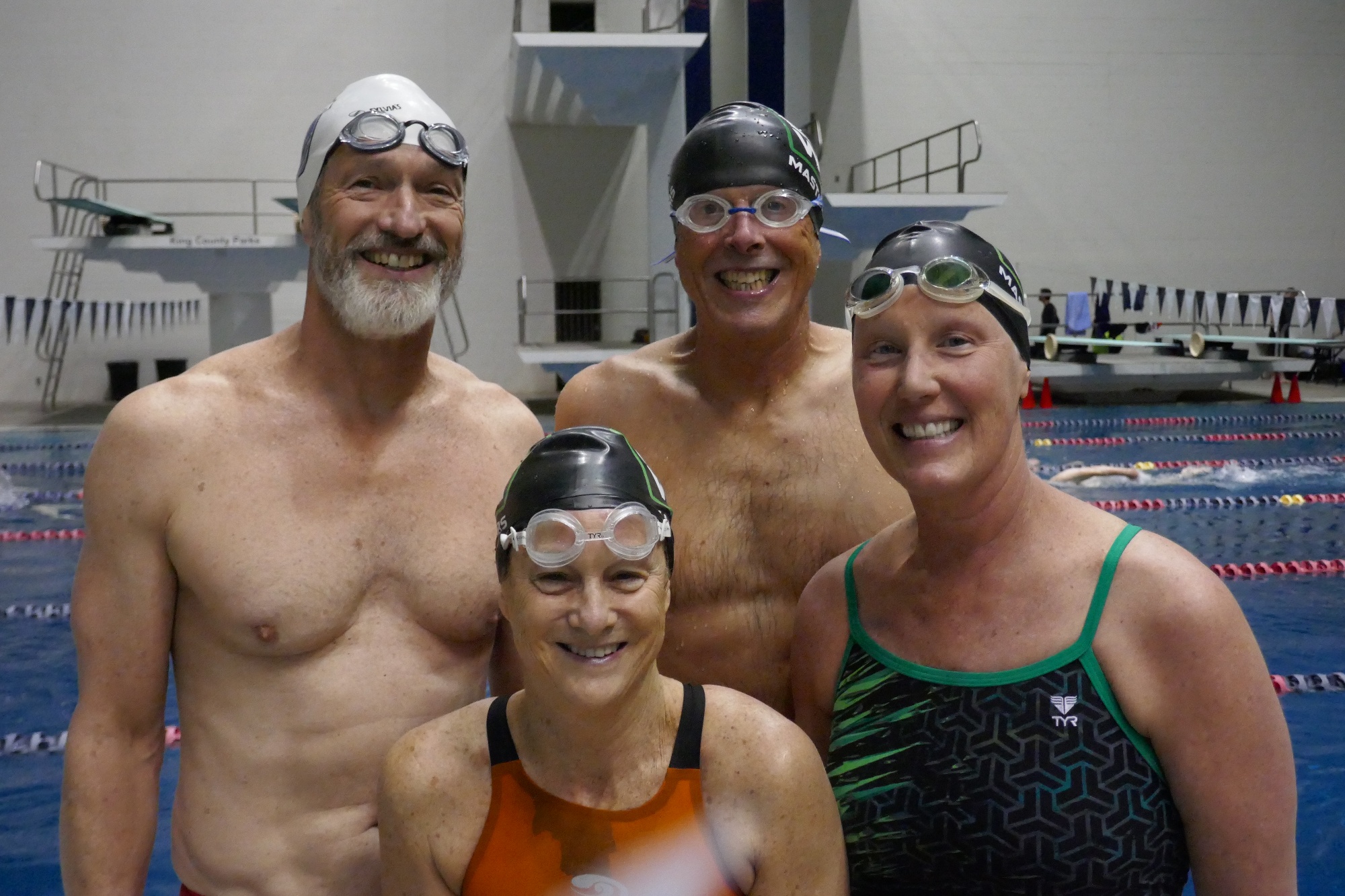 Our club is a USMS year round team offering high quality professional coaching and technique instruction for all ages (18 yrs+) and abilities. We have a fairly competitive group, from former Olympians and D1 Collegiate swimmers to triathletes and dedicated fitness swimmers. Our "slow" lanes do 100y repeats on a 2:00 send-off. Workouts are always challenging, but we make it fun by accepting that challenge and supporting our teammates every step of the way. We have only one rule; EVERYONE TRIES TO MAKE THE WORKOUT BETTER FOR EVERYONE ELSE IN THE POOL. Practices take place at Juanita Aquatics Center located on the campus on Juanita High School in Kirkland, WA. If you wish to try a practice contact the Head Coach at [email protected] for more information. You can try one practice for free to see if it is what you're looking for. If it's a good fit, swimmers must join the team for a $50 fee and decide if they want to be a drop in member or pay monthly dues.